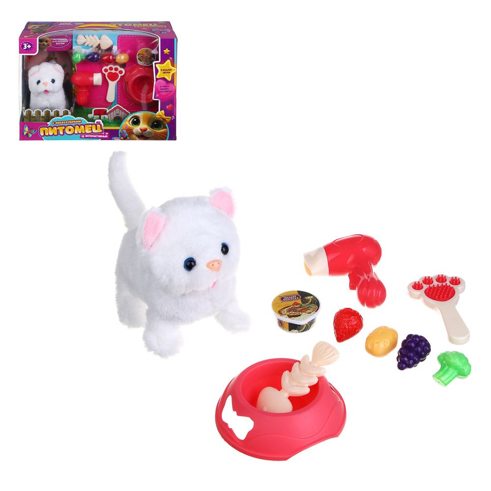 Милый пушистый питомец – не просто игрушка, а настоящий компаньон для игр! Он умеет ходить, вилять хвостиком, мотать головой и издавать забавные звуки, создавая впечатление живого зверька. В комплекте – целый набор аксессуаров (фен, расческа, миска, лакомство и фрукты), чтобы малыш мог почувствовать себя настоящим хозяином и ухаживать за своим питомцем. Мягкое тельце из полиэстера приятно гладить, а прочный пластик (ABS) делает игрушку устойчивой к активным играм. Для работы нужны 2 батарейки АА. Размер питомца – 36×16×25 см, он достаточно крупный, чтобы обнимать и играть, но при этом удобный для детских ручек. Рекомендован для детей от 3 лет.