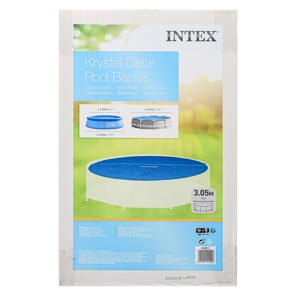 Тент для бассейна термосберегающий INTEX «Fits 10' Easy Set & Frame Pools» предназначен для каркасных круглых бассейнов диаметром до 290 см. Плотное полотно используется в ночное время суток для уменьшения теплопотерь, а также для защиты воды от загрязнений, попадания пыли и листвы. Не промокает. Тент имеет легкий вес, поэтому им можно быстро и легко накрыть бассейн в одиночку. Компактный в сложенном виде.