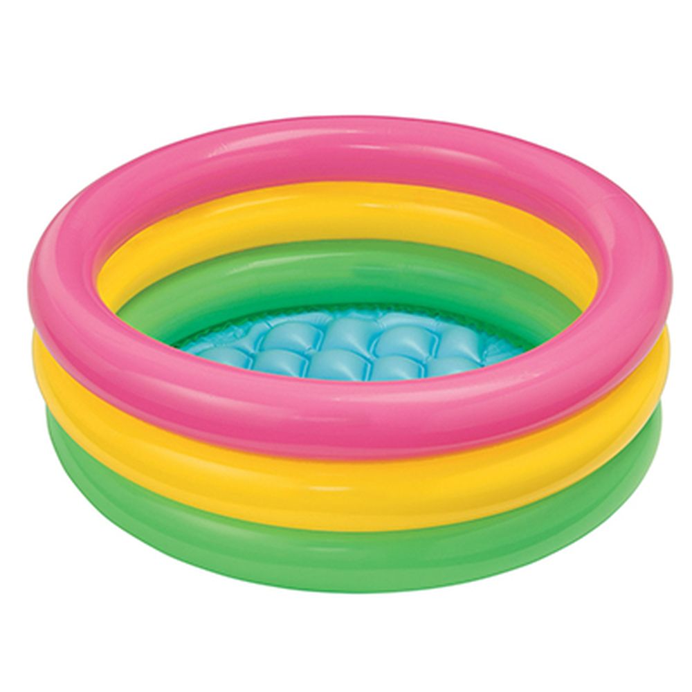 Надувной бассейн для малышей с надувным дном «Радуга» INTEX 61x22 см позволит малышу освежиться в жаркий летний день в абсолютной безопасности. Мягкие стенки и дно защитят его от ударов, а глубина специально адаптирована для детей самого раннего возраста. Предназначен для детей от 1 года до 3 лет. Приятный дизайн в виде красочных надувных колец и рифлёного надувного дна не оставит равнодушными даже взрослых. С этим бассейном малыш сможет разучить новые игры и избавиться от боязни воды.