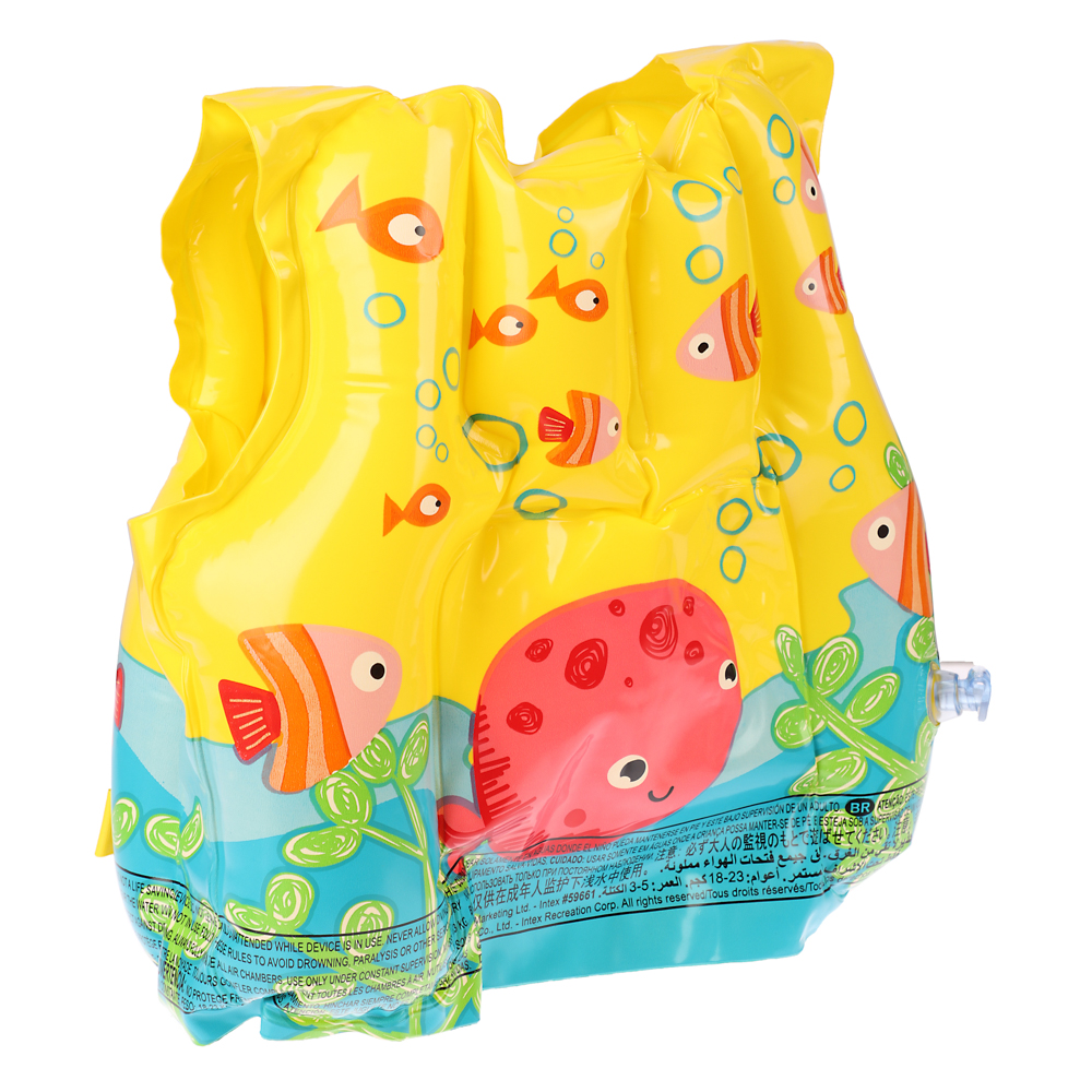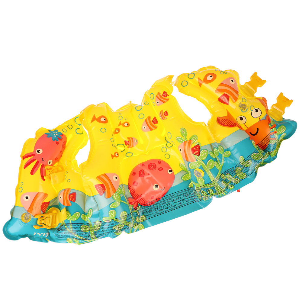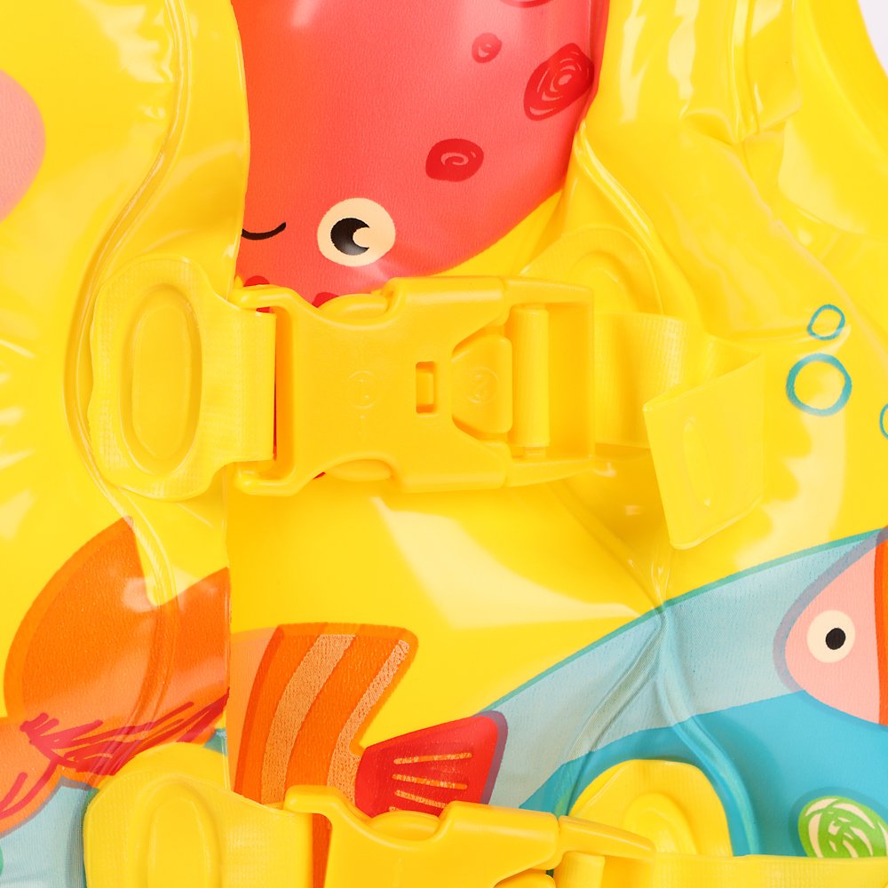 Плавательный жилет для ребенка – одна из необходимых вещей, которая поможет ему научиться быстро плавать. Он поможет ребенку уверенно держаться на плаву, не сковывая руки и ноги. Жилет выполнен из специального прочного винила, имеет 3 воздушные камеры – одни из них является воротником, и надежные застежки, удерживающие жилет на ребенке. Цветовое оформление жилета представлено в раскраске «Тропические друзья». Предназначен для детей в возрасте от 3 до 5 лет. Чтобы купить, добавьте в корзину и оформите заказ.
