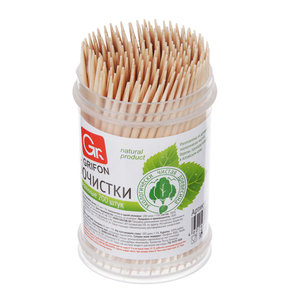 Зубочистки GRIFON – это простая и незаменимая вещь для ежедневного использования и сервировки. Изготовленные из экологически чистой древесины берёзы категории А, они отличаются прочностью, безопасностью и экологичностью. Упакованы в удобную пластиковую баночку с этикеткой и крышкой-дозатором, которая обеспечивает лёгкий доступ и гигиеничное хранение. В одной баночке содержится 200 штук. Зубочистки GRIFON подходят не только для ухода за полостью рта, но и для использования на кухне: ими удобно фиксировать рулеты, канапе и другие блюда. Надёжный и практичный аксессуар, который всегда пригодится дома, на даче или на праздничном столе.