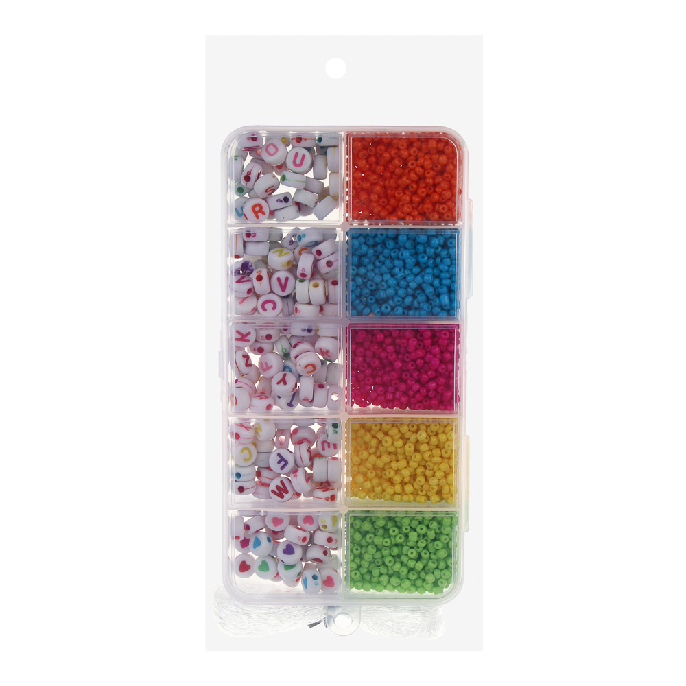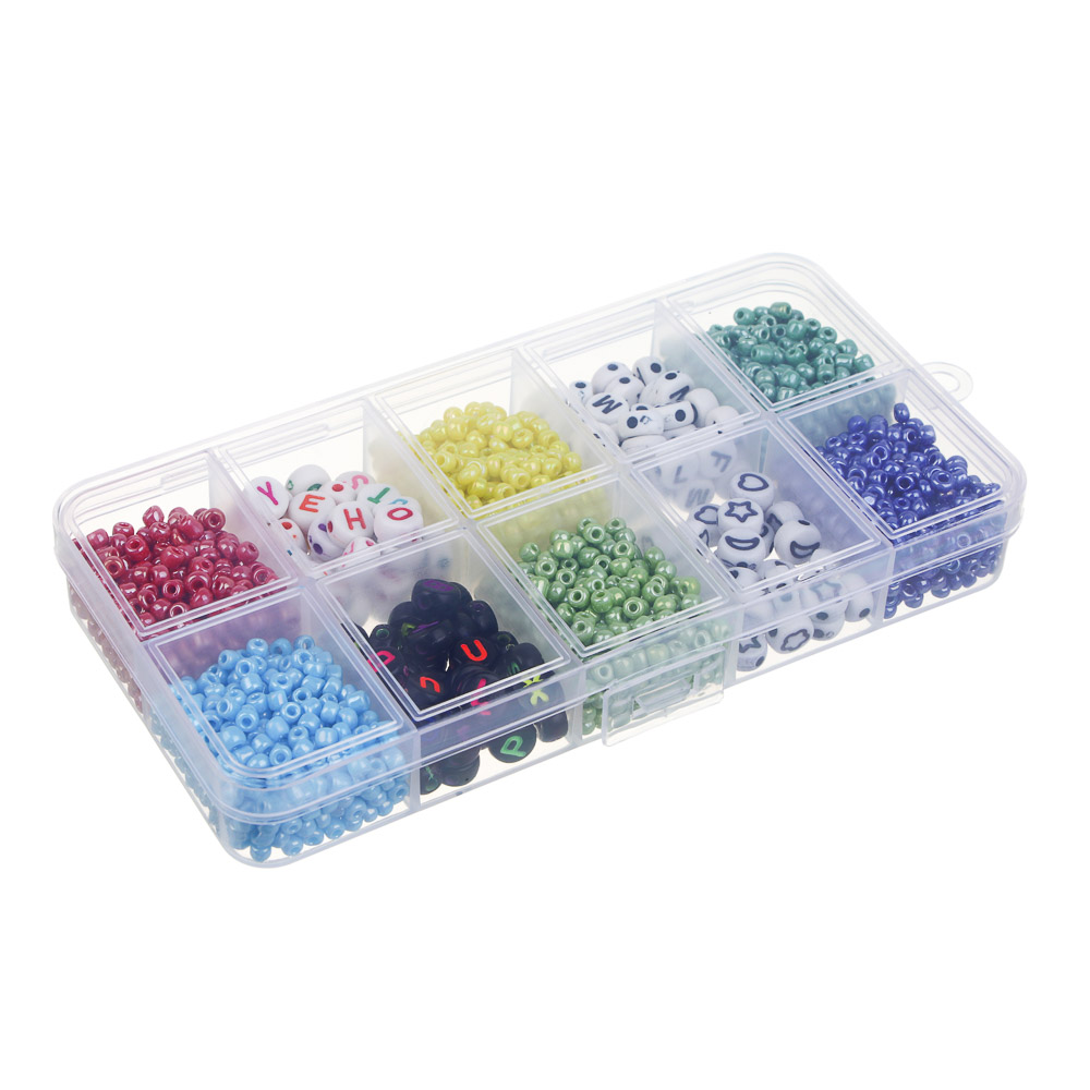 Набор для бисероплетения, 10 отделений – это набор для детского творчества, который используется для изготовления браслетов, бус, подвесок и поделок. Пластиковый кейс содержит 10 разных вариантов бисера, бусин из стекла и шармов. Яркие привлекательные цвета позволяют придумывать интересные оригинальные сочетания. Готовые изделия можно подарить родным и подружкам. Набор также включает нить. Создание украшений придется по душе ребенку, поможет раскрыть творческий потенциал, а также эффективно развивает мелкую моторику, аккуратность и усидчивость. 6 дизайнов в ассортименте.