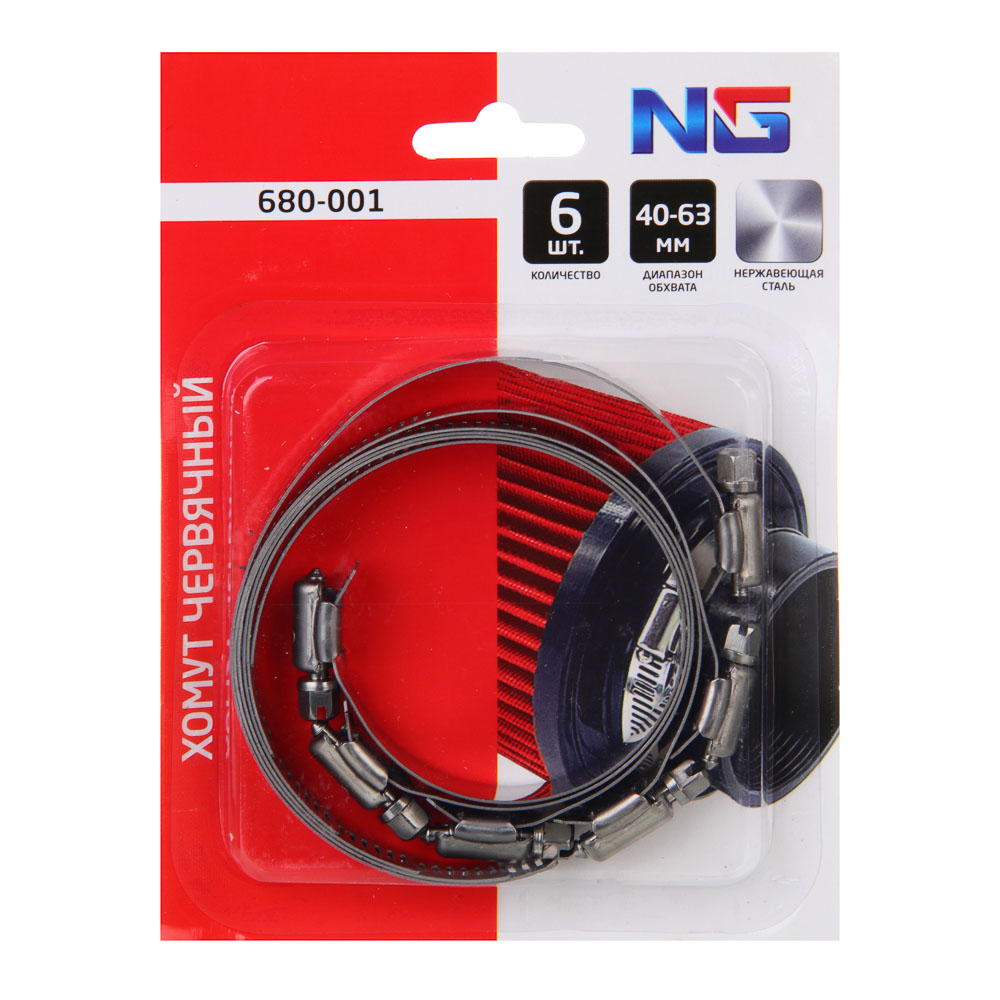 Хомут червячный NG 40-63 мм предназначен для крепления, стягивания, соединения и герметизации различных труб, деталей с резьбой, шлангов и патрубков. Имеет высокую прочность и стойкость к механическим повреждениям. Оснащен надежным червячным замком и подходит для многоразового использования. 6 штук в блистере.