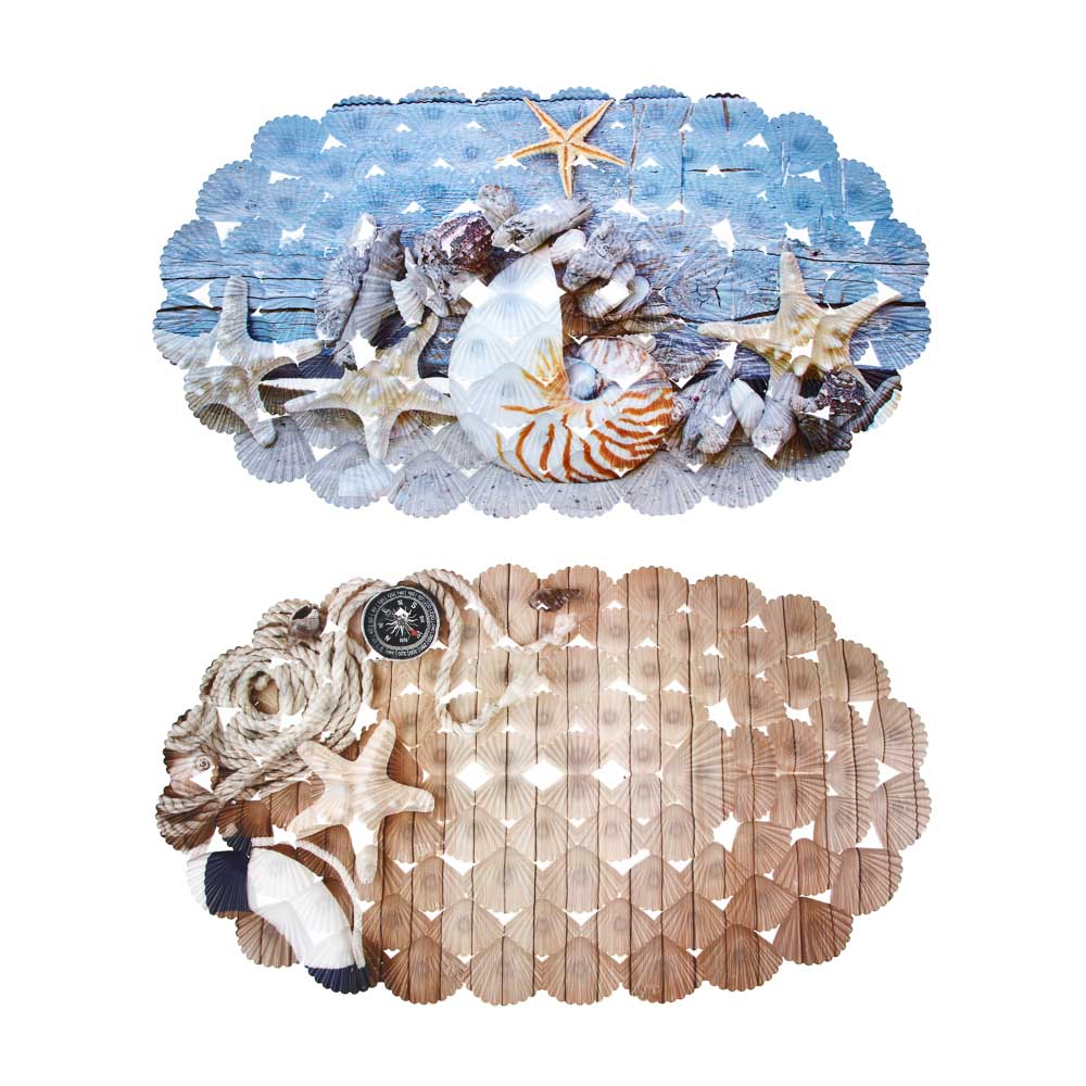 Коврик в ванну противоскользящий VETTA «Океанский прибой» 66х38 см из ПВХ сделает процесс приема ванной или душа более комфортным и безопасным. Коврик крепится на надежные присоски, отлично держится, не царапая эмалированное покрытие ванны, имеет приятную на ощупь поверхность, не натирает кожу, а также порадует своим привлекательным дизайном в морской тематике. Быстро высыхает, не гниет, не растрескивается, не накапливает запахи и плесень. Практичный и долговечный. 2 дизайна на выбор.
