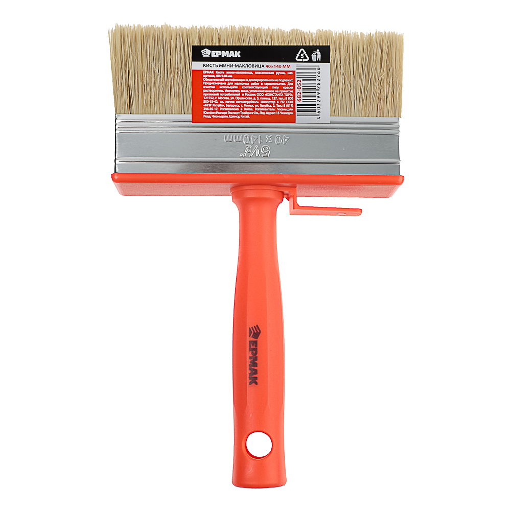 Кисть малярная мини-макловица с пластиковой ручкой, натуральная щетина 40х140 мм – инструмент, помогающий выполнять любые малярные работы. Имеет легкую, но при этом прочную рукоятку и надежно закрепленную щетину, что дает возможность быстро нанести необходимое количество краски на любую подготовленную поверхность. Благодаря высокой плотности щетины, впитываемость повышается и краска равномерно распределяется. На ручке предусмотрен крюк для фиксации на краю ведра.