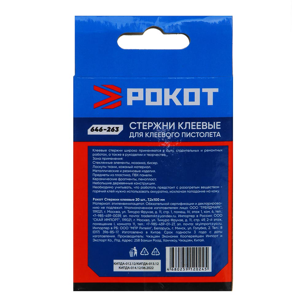 РОКОТ Стержни клеевые 20шт, 7,2x100мм