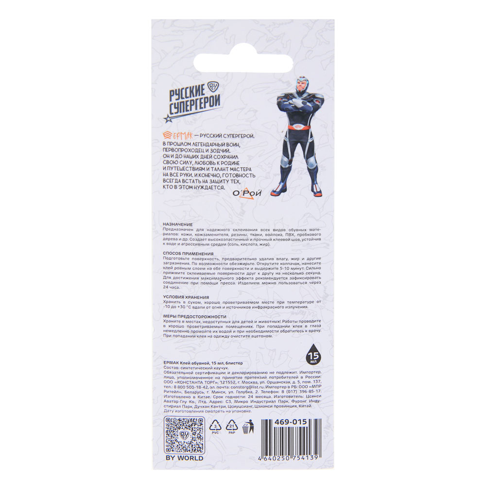 Клей обувной «Ермак» предназначен для склеивания различных материалов, таких как кожа, замша, ПВХ, эластопласт, пробка и резина. Он поставляется в удобной тубе объёмом 15 мл и содержит синтетический каучук. Клей прозрачный, что позволяет сохранить эстетичный вид изделия после ремонта.