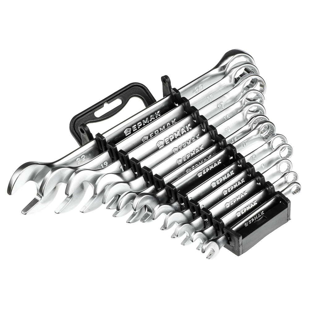Набор рожково-накидных ключей ТМ ЕРМАК предназначен для различных работ со всеми видами шестигранного крепежа. Высокое качество материала обеспечивает необходимый результат работы и долгий срок эксплуатации. Удобное хранение обеспечивает эргономичный пластиковый подвес.