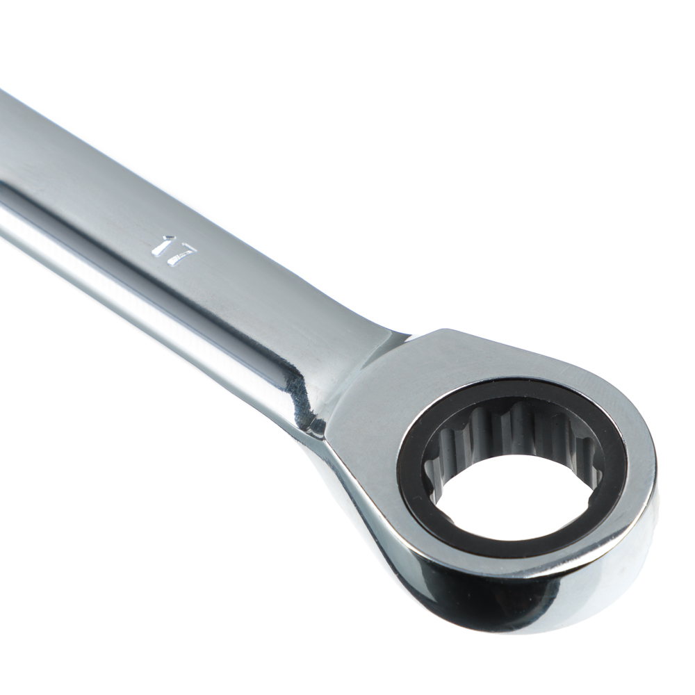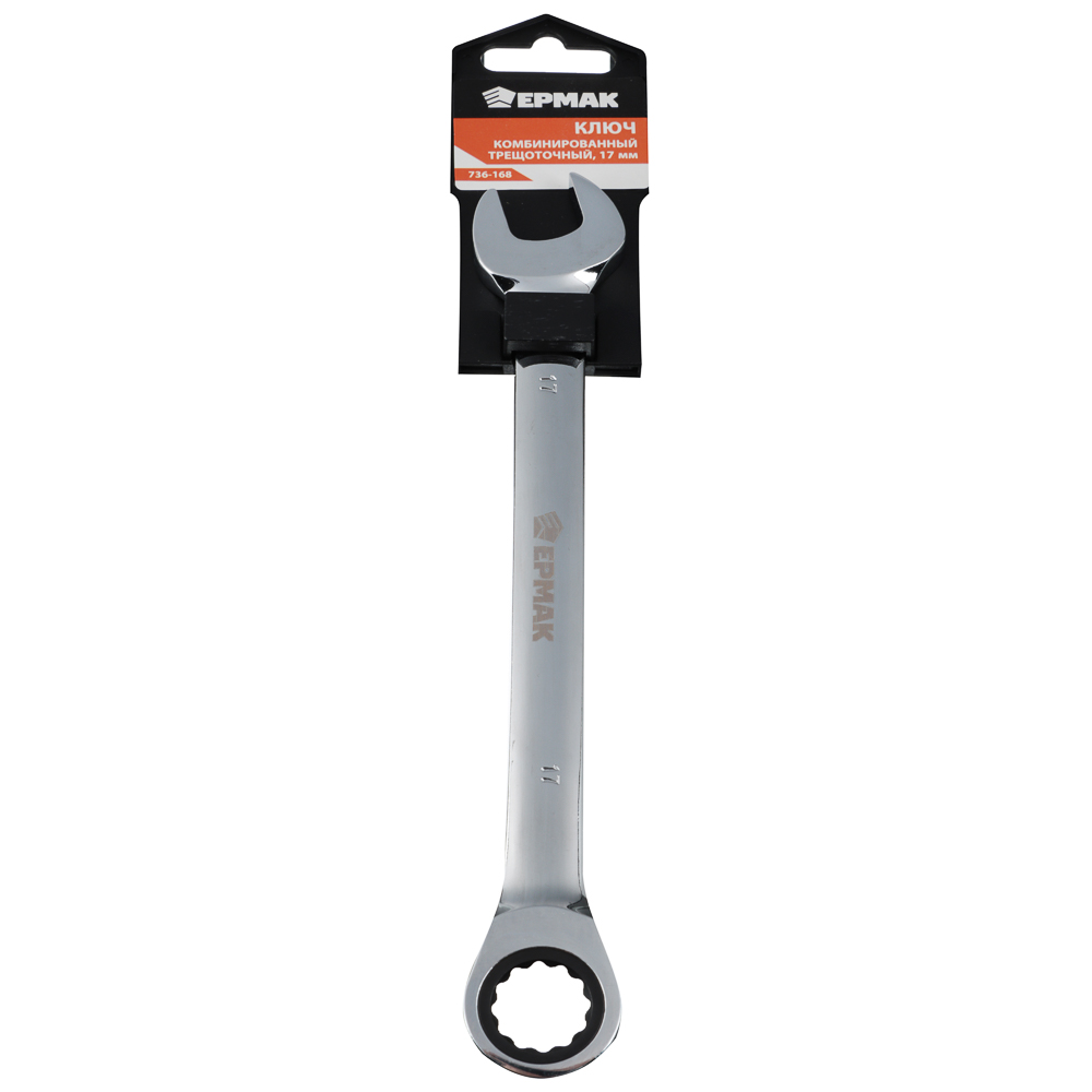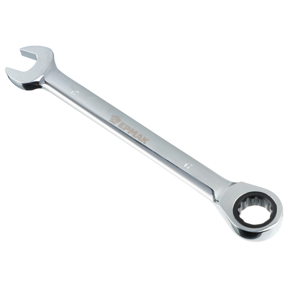 Трещоточный комбинированный ключ ЕРМАК 17 мм совмещает в себе 2 инструмента: рожковый ключ открытого типа и накидной. Имеет широкий спектр применений: незаменим в ремонте, монтажных работах, для проведения сантехнических работ. Имеет цельнометаллическую конструкцию из хромванадиевой стали с защитным антикоррозионным покрытием. Устойчив к механическим нагрузкам, прочный и долговечный.