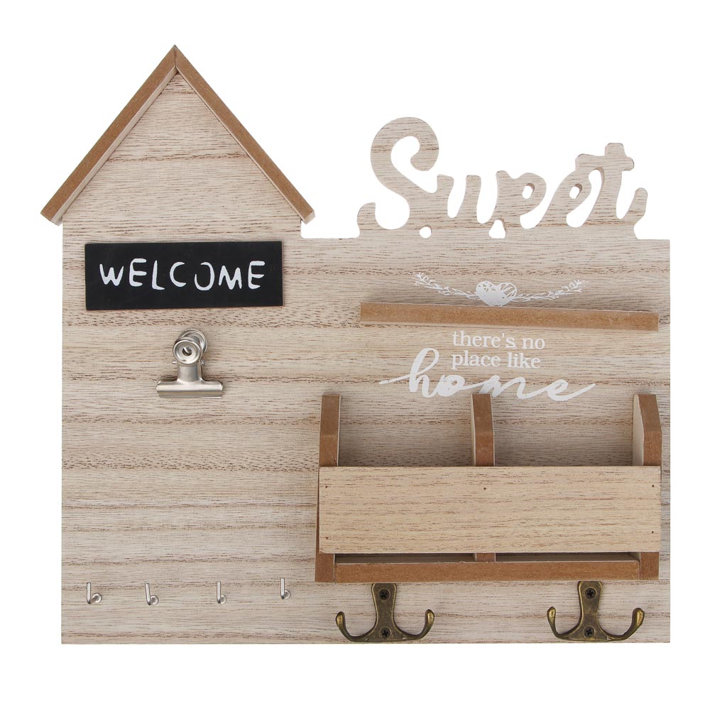 Стильная и практичная ключница открытого типа с полочками — идеальное решение для организации пространства в прихожей. Корпус выполнен из прочного МДФ, а крючки из металла, что обеспечивает надёжность и долговечность конструкции. Восьми крючков хватит для ключей всей семьи, а две удобные полочки подойдут для мелочей: писем, очков, аксессуаров. Размер 28×26 см позволяет разместить изделие даже в небольшой прихожей, добавив интерьеру уюта и порядка. Ключница не только помогает держать всё необходимое под рукой, но и станет стильным акцентом вашего дома.