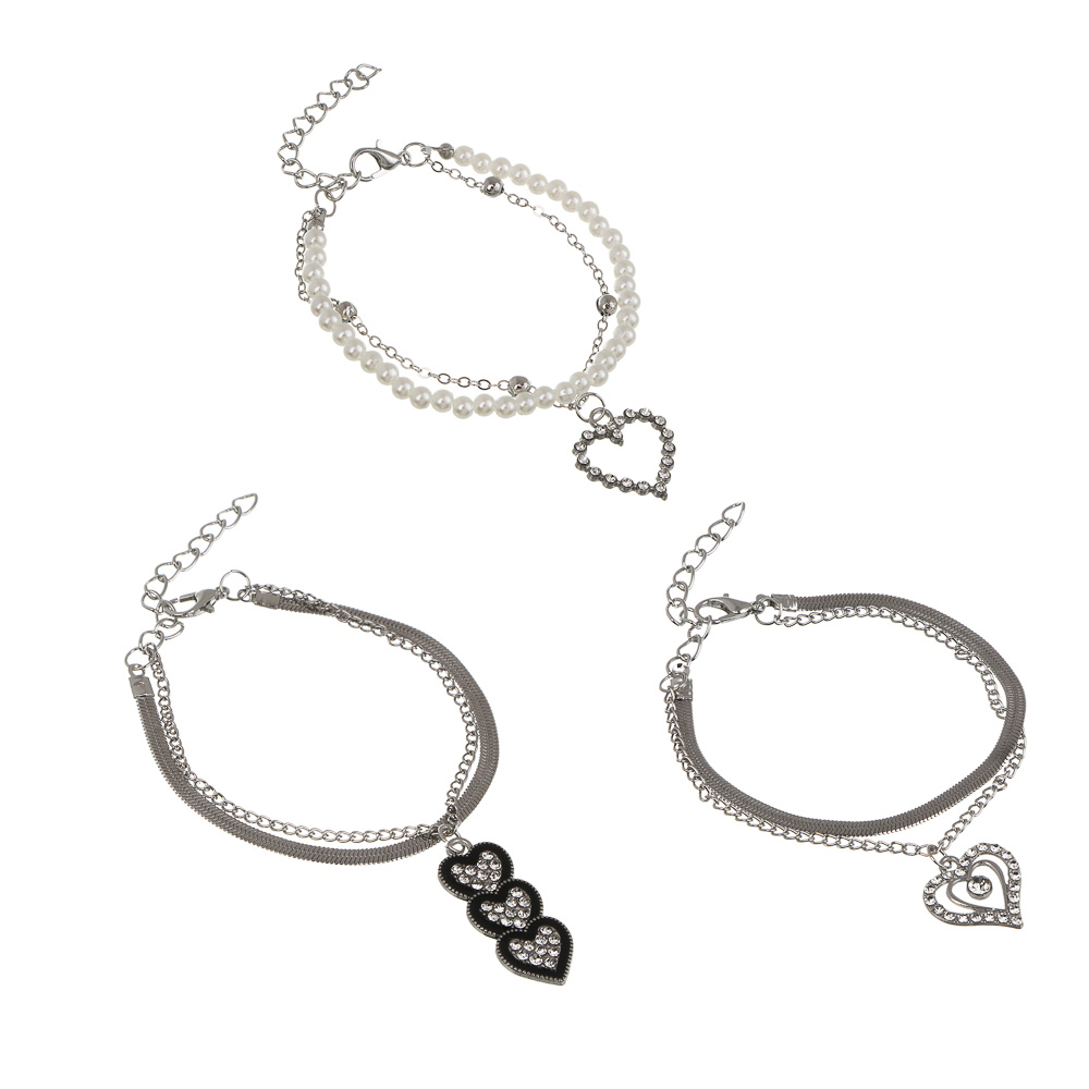 Браслет 15 см, сплав, БЖ25-30, цвет серебряный с декоративной подвеской в виде сердца – это элегантное украшение, которое послужит в качестве завершающей детали вашего образа, дополнит повседневный или праздничный наряд и будет гармонично смотреться с другими украшениями в аналогичном стиле. Двойная цепочка с разными текстурами смотрится выразительно и объемно, что делает украшение самодостаточным даже без использования подвески. Застежка карабин позволяет быстро и легко надеть браслет без посторонней помощи. Длина браслета регулируется. 3 дизайна в ассортименте.