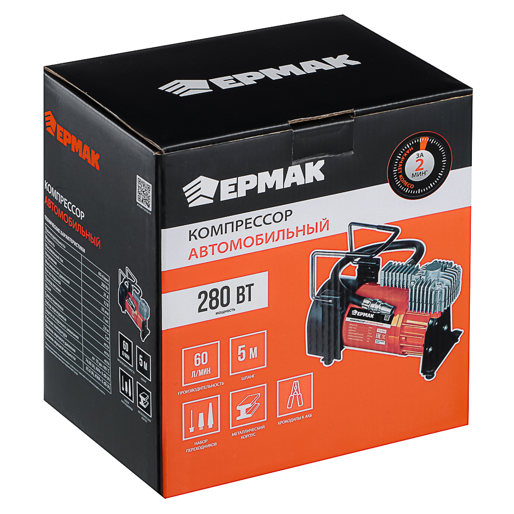 Автомобильный компрессор – незаменимый помощник, который используется для сжатия и подачи воздуха под давлением. Инструмент поможет подкачать шины легковых автомобилей, мотоциклов, любых внедорожников, микроавтобусов и компактных грузовиков, велосипедов, мячей, матрасов и других надувных изделий. Благодаря гибкому витому шлангу длиной 5 м дотянуться до любого колеса будет удобно и легко. Производительность автокомпрессора составляет 60 л/мин, мощность – 280 Вт. Для удобства хранения и переноски компрессор укомплектован сумкой.