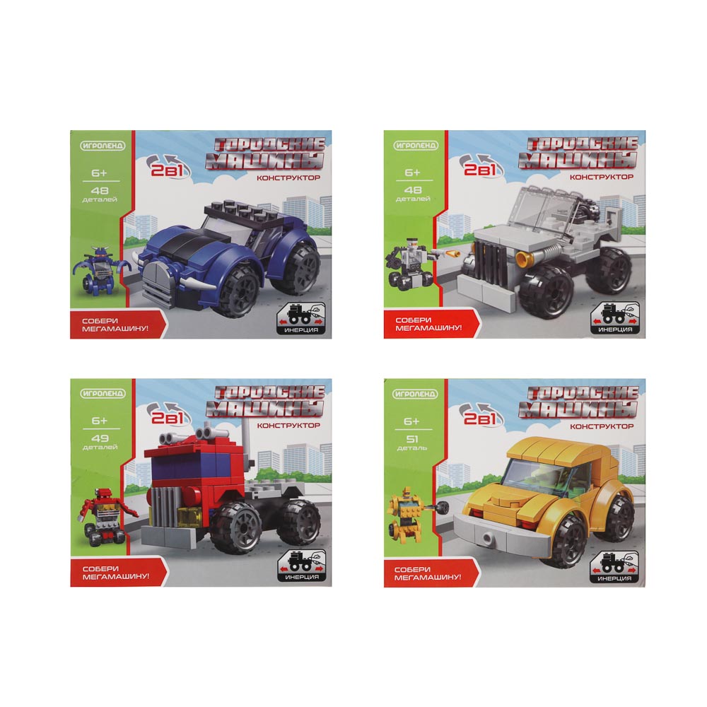 Собирайте, играйте и придумывайте собственные истории с конструктором «Городские машинки» от ИГРОЛЕНД! В наборе 48–51 детали из безопасного прочного ABS-пластика, которые легко соединяются между собой, позволяя ребёнку создавать различные модели городских машин и развивать воображение. Конструктор способствует развитию мелкой моторики, логического мышления, творческих навыков и усидчивости. Рекомендуется для детей от 6 лет, подходит для совместной игры с друзьями или индивидуального творчества. В ассортименте.