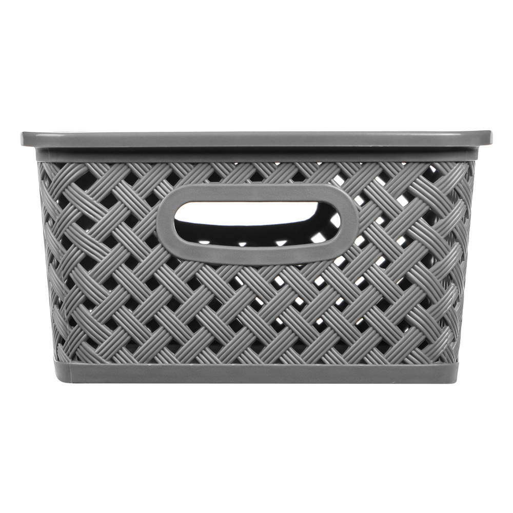 Пластиковая корзинка для хранения мелочей «Сеул» предназначена для косметики, бытовой химии и прочего. Пластик практичен, легко моется, не впитывает запахи, поэтому такую корзинку можно использовать в любой комнате, так как она не боится влаги, сырости, перепадов температуры. Корзинка украсит любую комнату и поможет организовать хранение на открытых полках. Крышка плотно прилегает и надежно удерживает содержимое внутри. Размер 25x20x10 см. В ассортименте 2 цвета.
