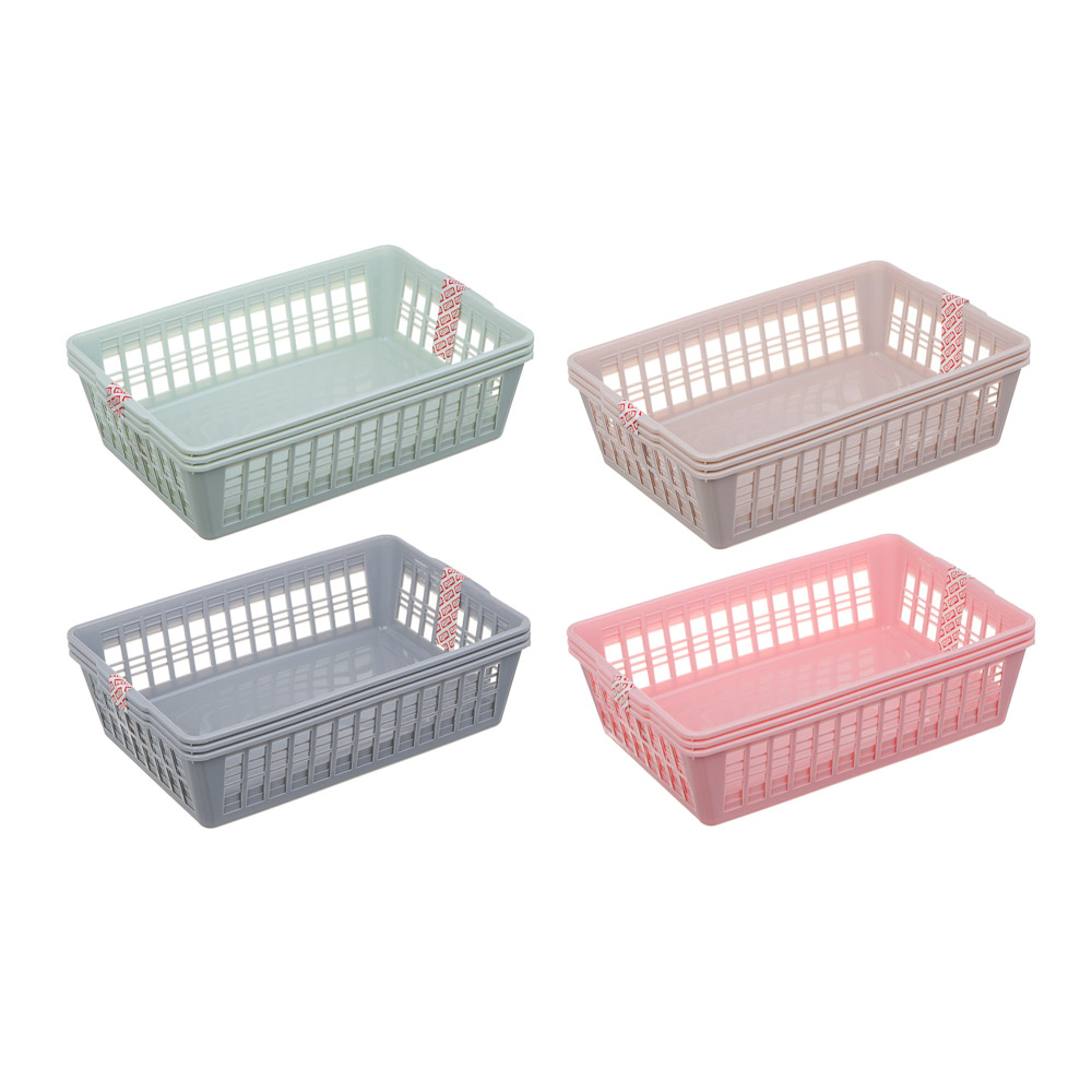 Корзина для хранения VETTA размером 24х16х6 см – необходимый предмет в быту, который позволит организовать пространство и держать все вещи на своих местах. Корзина подходит для хранения принадлежностей для рукоделия, галантерейных изделий, пакетиков со специями и многих других мелких вещей. В наборе 3 штуки. Корзина для хранения выполнена из высококачественного пластика. Не боится перепадов влажности и температуры. Коробка проста в уходе: ее можно мыть водой.