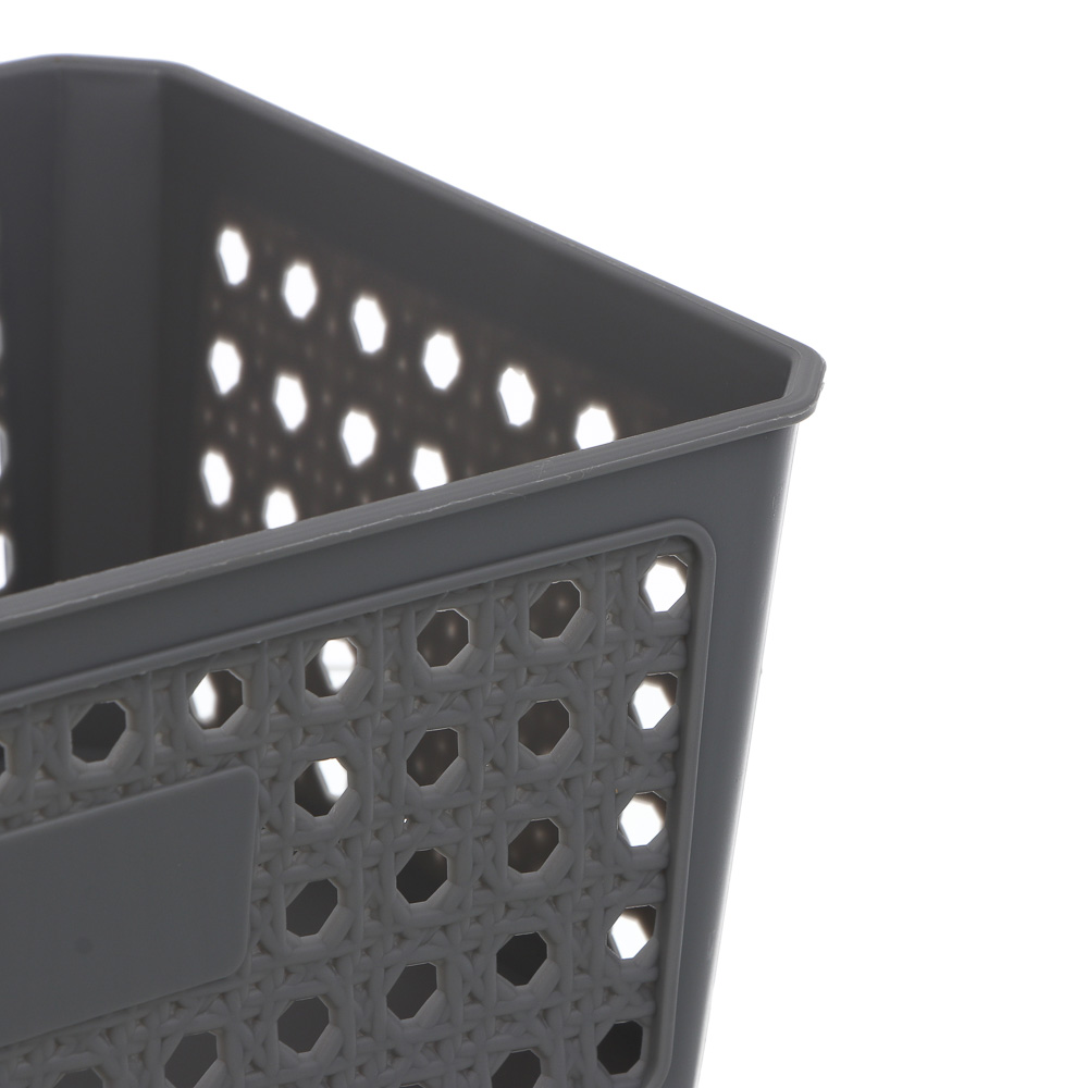 Стильная корзина VETTA – практичное решение для организации пространства в любом помещении! Благодаря компактным размерам 21х15,5х10 см она идеально подходит для хранения различных мелочей, не занимая много места. Современный дизайн в сером цвете гармонично впишется в любой интерьер, а перфорированные отверстия обеспечат отличную вентиляцию содержимого. Пластиковый материал гарантирует долговечность и лёгкость в уходе. Прочная конструкция корзины позволяет надёжно удерживать вещи, а специальная форма обеспечивает устойчивость при наполнении.