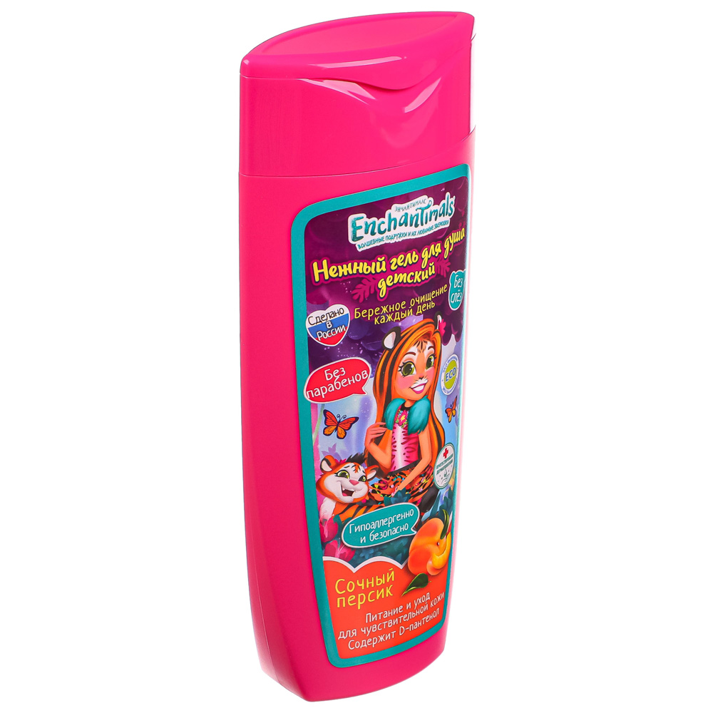 Детский нежный гель для душа «Enchantimals» с ароматом сочного персика непременно понравится вашему ребёнку и сделает принятие гигиенических процедур приятным занятием: - бережное очищение каждый день, - питание и уход для чувствительной кожи, - без слёз, - без парабенов, - содержит D-пантенол, - приятный аромат, - гипоаллергенно и безопасно, - протестировано дерматологами, - яркая упаковка с любимыми героями. Мягкий увлажняющий гель для душа создан для бережного очищения кожи ребёнка. Бетаин и пантенол смягчают и успокаивают сухую и чувствительную кожу, делая её гладкой и шелковистой. Натуральный экстракт персика, входящий в состав геля, активно питает кожу.