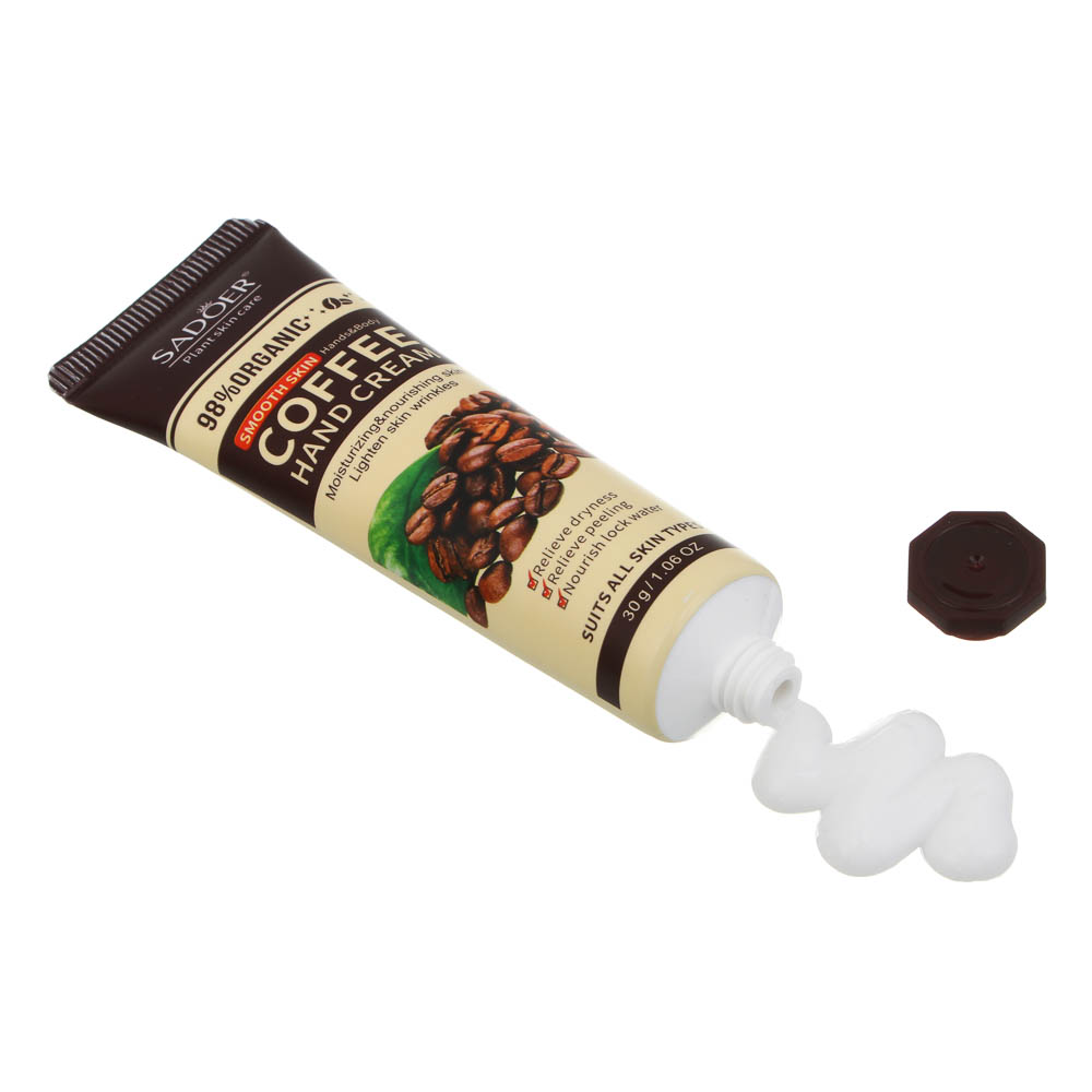 Крем для рук питательный с кофе тм Sadoer, 30 гр. с натуральными компонентами и с экстрактом кофе создан специально для интенсивного ухода за нежной кожей рук. Формула на 98% состоит из органических компонентов, которые глубоко увлажняют, устраняют сухость и шелушения, вызванные неблагоприятными погодными и производственными факторами. Крем эффективно смягчает, разглаживает и визуально сокращает мелкие морщины, возвращая коже мягкость, эластичность и гладкость. Обладает приятной лёгкой текстурой, быстро впитывается и подходит для всех типов кожи. А приятный кофейный аромат подарит заряд бодрости и отличного настроения.