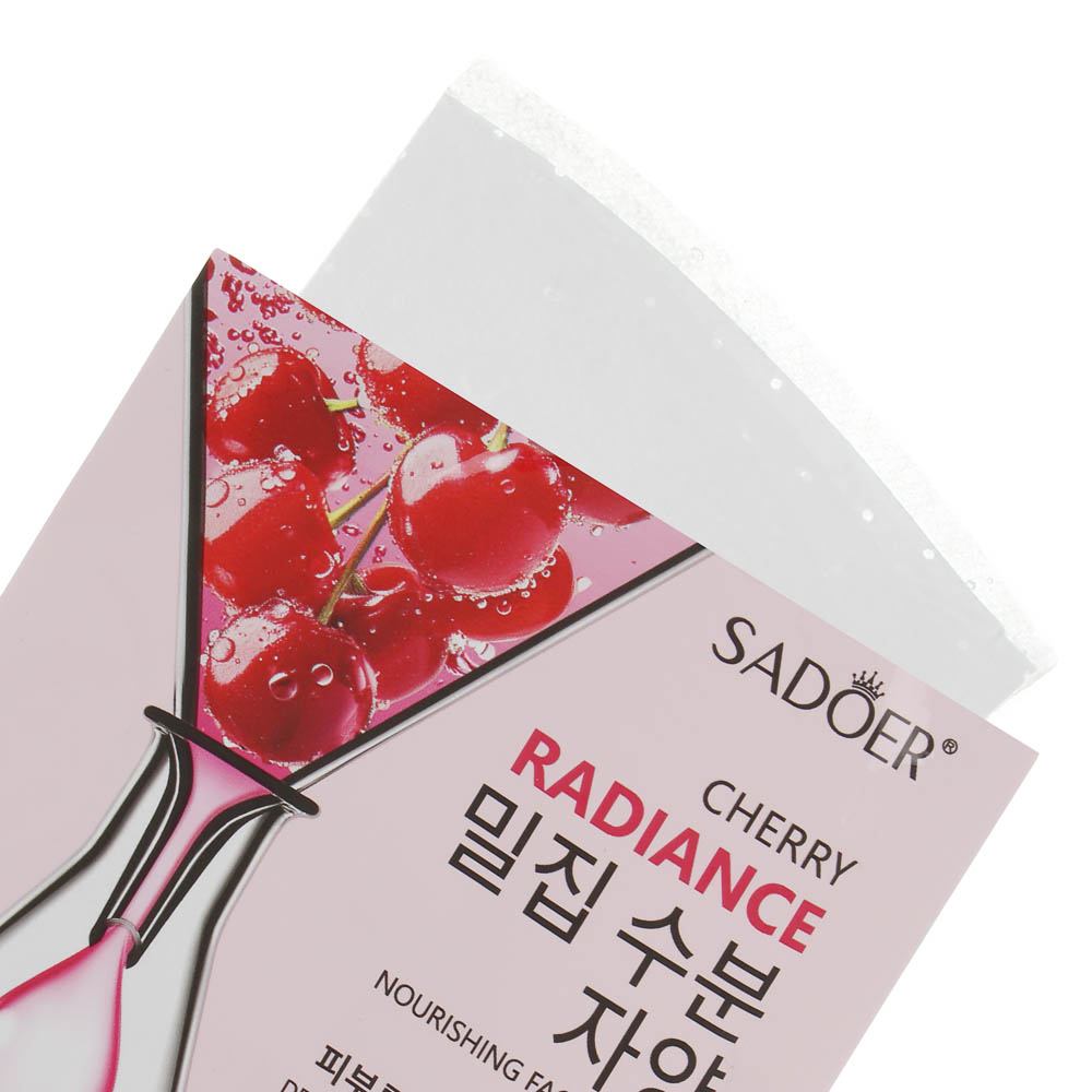 Маска для лица Sadoer с экстрактом черешни предназначена для придания коже свежести, сияния и здорового вида. Лёгкая формула быстро впитывается, увлажняет кожу и способствует улучшению её текстуры. Экстракт черешни богат витаминами и антиоксидантами, помогает тонизировать кожу, выравнивать тон и придавать естественное сияние. Маска мягко ухаживает за кожей, делая её более упругой и мягкой на ощупь. Компактный формат 25 мл удобен для домашнего ухода и поездок, позволяя поддерживать сияние кожи в любое время.