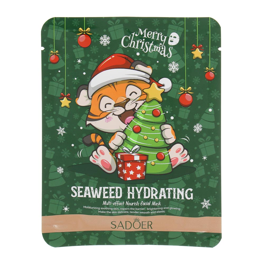 Маска для лица тканевая увлажняющая с морскими водорослями тм SADOER «Merry Xmas», 25 грамм для всех типов кожи – это многофункциональная маска, которая эффективно восполняет баланс влаги, насыщает кожу необходимыми питательными веществами, оказывает регенерирующий эффект, способствует восстановлению упругости и эластичности. Выравнивает цвет лица, дарит естественное сияние, молодость и свежесть. Комфортная текстура быстро впитывается без ощущения липкости и стянутости. Маска с новогодним оформлением может стать приятным подарком для коллеги или подруги как знак внимания.