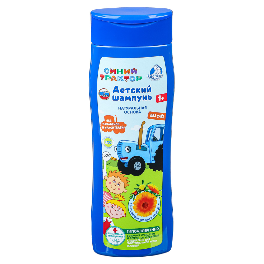Детский шампунь «Синий трактор» с экстрактом череды и календулы непременно понравится вашему ребёнку: - натуральная основа; - с экстрактами череды и календулы; - без парабенов и красителей; - без слёз; - гипоаллергенно; - подходит для чувствительной кожи малыша; - протестировано дерматологами. Этот шампунь создано специально для бережного очищения детской кожи головы и волос. Формула без слёз защищает глазки малыша от раздражения. Подходит для чувствительной детской кожи. Комплекс из натуральных экстрактов череды и календулы прекрасно удаляет загрязнения, оказывает дезинфицирующее действие на кожу головы, увлажняет волосы, делает их более мягкими, крепкими и блестящими, а также обеспечивает лёгкое расчёсывание.