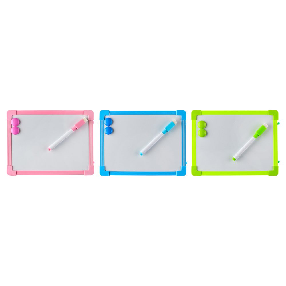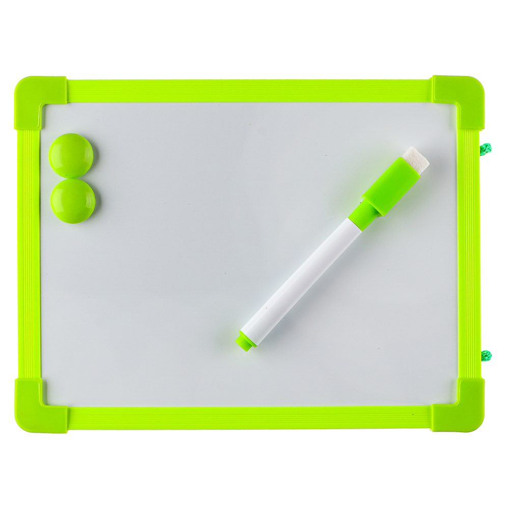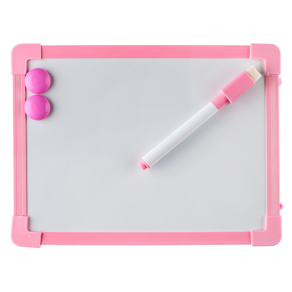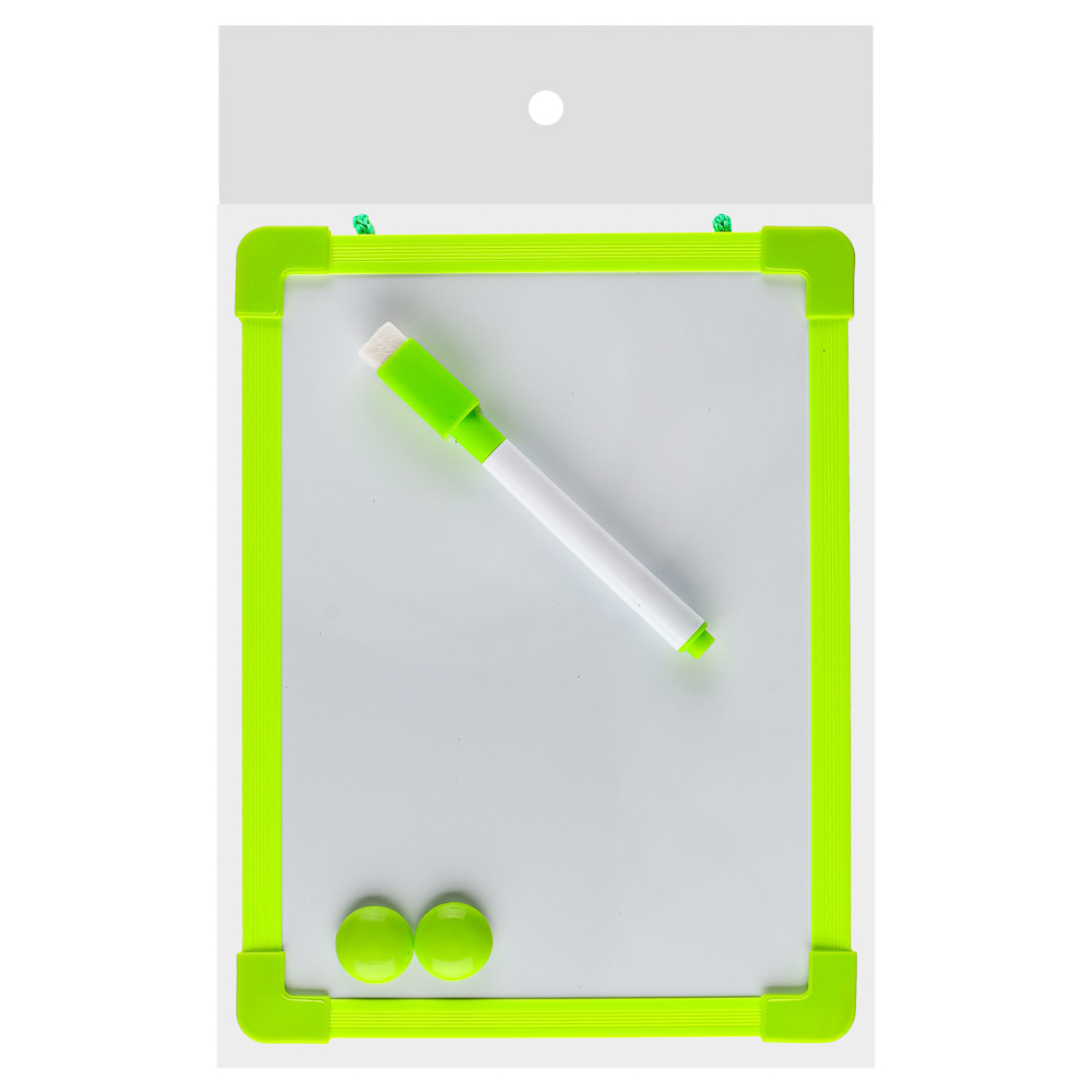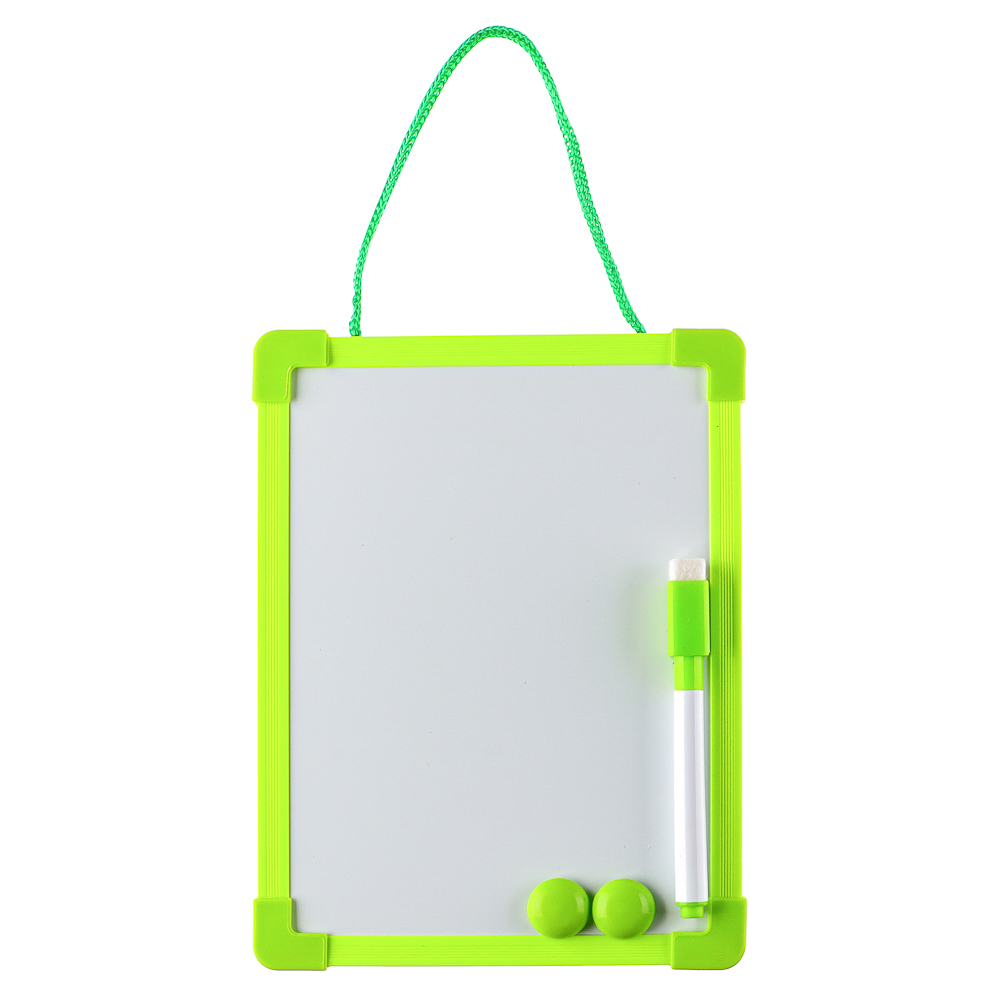 Доска для рисования с маркером – это компактный и удобный инструмент для творчества и заметок. Изготовленная из пластика, доска имеет размеры 20х15 см, что делает её идеальной для использования дома, в школе или офисе. В комплект входит маркер, который позволяет легко рисовать и писать, а также два магнита для крепления заметок или рисунков на поверхность доски. Доска оснащена верёвкой, благодаря которой её можно подвесить на стену, обеспечивая удобный доступ к ней в любое время. Этот набор станет отличным помощником в организации пространства и позволит развивать творческие навыки у детей.