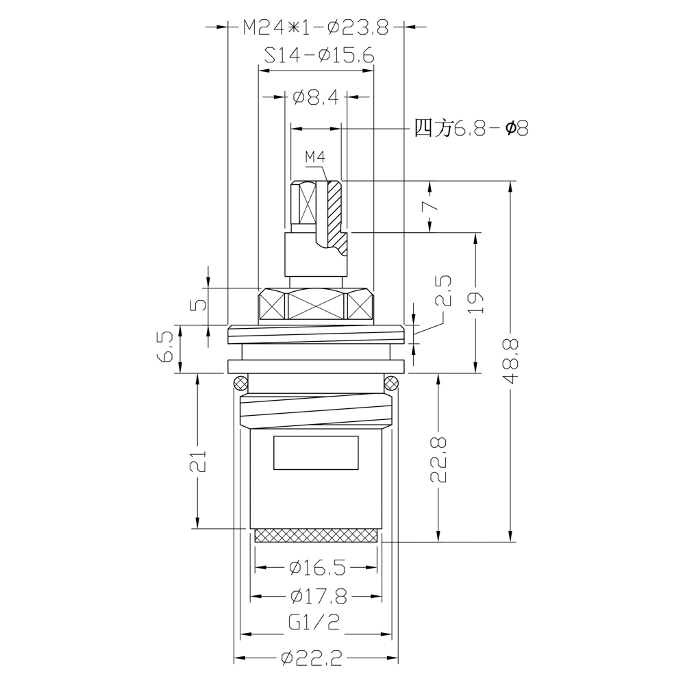 Устройство представляет собой кран-буксу для смесителя 1/2". Она имеет квадратное сечение и шток размером 7х7 мм. Угол поворота составляет 90 градусов. Основной материал изготовления - металлокерамика, обеспечивающая долговечность и надежность изделия. Данная кран-букса отлично подойдет для замены старых или поврежденных частей смесителей в вашем доме.