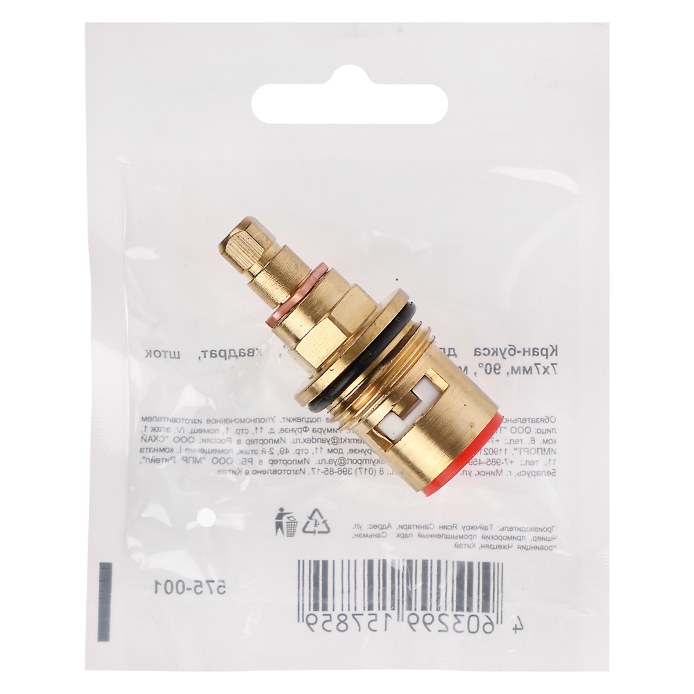 Устройство представляет собой кран-буксу для смесителя 1/2". Она имеет квадратное сечение и шток размером 7х7 мм. Угол поворота составляет 90 градусов. Основной материал изготовления - металлокерамика, обеспечивающая долговечность и надежность изделия. Данная кран-букса отлично подойдет для замены старых или поврежденных частей смесителей в вашем доме.