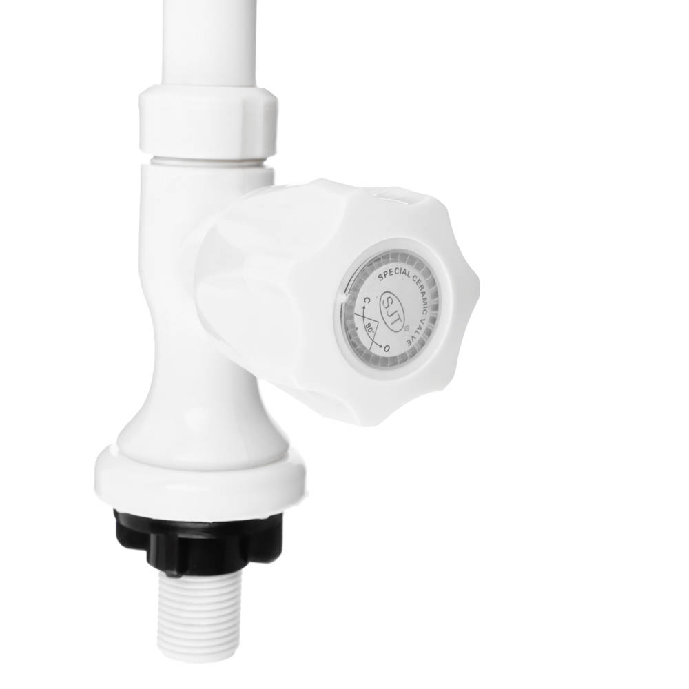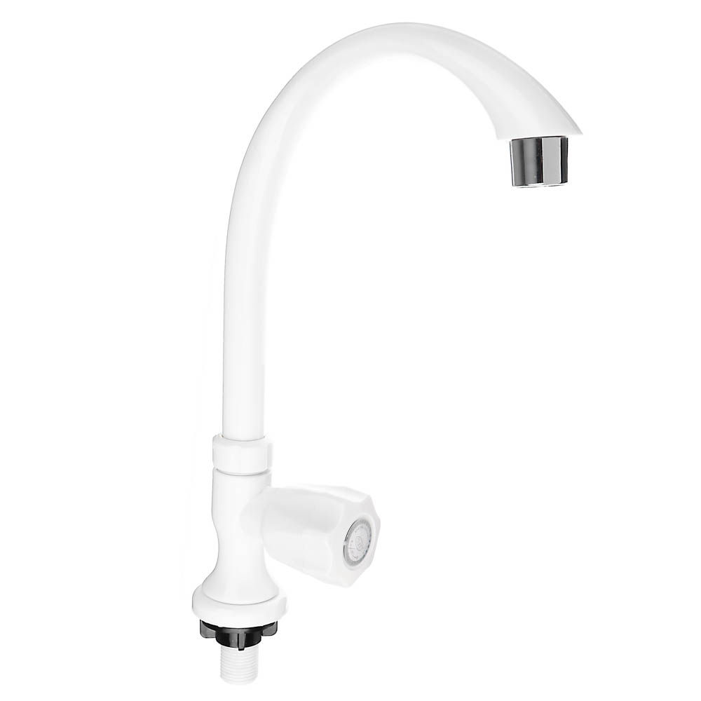 Однорычажный кран для холодной воды из белого пластика – это надежное и экономичное решение для кухни, ванной или хозяйственных нужд. Легкость и удобство управления обеспечиваются простым поворотом рычага, а крепление на гайке гарантирует быструю установку и прочное крепление. Кран устойчив к воздействию воды, не подвергается коррозии и идеально подходит для длительного использования.