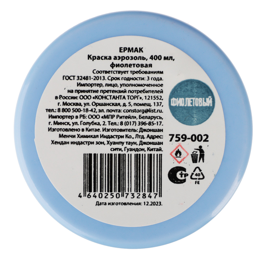 Фиолетовая краска-аэрозоль ЕРМАК, 400 мл — это высококачественная краска, предназначенная для окрашивания различных поверхностей. Она легко наносится, быстро сохнет и обеспечивает яркий и насыщенный цвет. Краска идеально подходит для окрашивания металлических, деревянных, пластиковых и других поверхностей. Она может использоваться как для внутренних, так и для наружных работ. Благодаря удобной форме аэрозоля, краску легко наносить даже в труднодоступные места. Она не требует использования дополнительных инструментов, таких как кисти или валики. Фиолетовая краска-аэрозоль ЕРМАК станет отличным выбором для тех, кто хочет быстро и без лишних хлопот обновить внешний вид своих вещей.