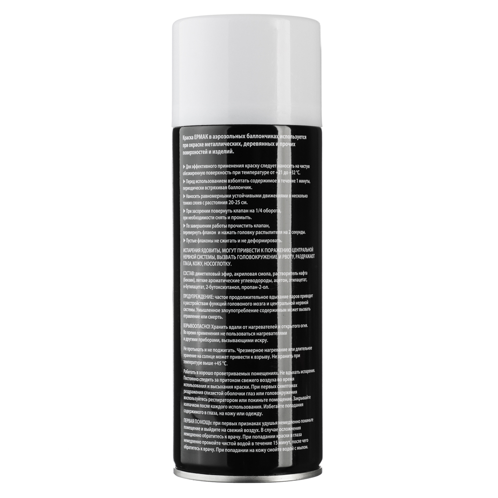 Аэрозольная краска тм ЕРМАК объемом 400 мл предназначена для декоративного окрашивания и защиты различных поверхностей, включая металл, дерево, пластик и другие материалы. Белый глянцевый оттенок 01 (9001/40) придает изделиям яркий, ровный и блестящий декоративный эффект.Удобный распылитель обеспечивает равномерное нанесение и контроль толщины слоя, предотвращая подтекания и обеспечивая гладкое покрытие. Быстрое высыхание ускоряет рабочий процесс, а прочный слой защищает поверхность от влаги, коррозии и механических повреждений.