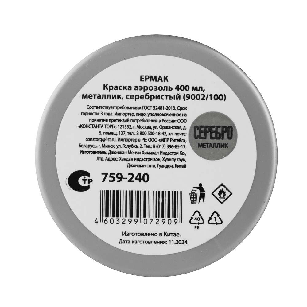 Аэрозольная краска тм ЕРМАК объемом 400 мл предназначена для окрашивания и декоративной отделки различных поверхностей, включая металл, дерево, пластик и другие материалы. Серебристый металлик (9002/100) придает изделиям стильный и современный вид с блестящим, отражающим свет покрытием. Краска обеспечивает равномерное распыление благодаря удобному распылителю, что позволяет получить гладкий слой без подтеков даже на сложных и труднодоступных участках. Быстрое высыхание обеспечивает оперативность работы, а прочное покрытие защищает поверхность от влаги, коррозии и механических повреждений.