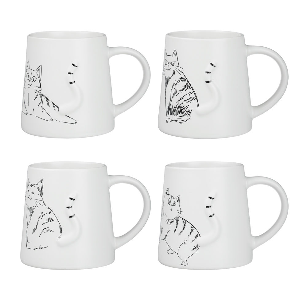 Кружка «Коты» от тм MILLIMI, объем 410 мл наполнит утро позитивным настроением и особенно придется по душе тем, кто не представляет жизни без пушистых созданий. Кружка из белого фарфора с лаконичным черным графическим рисунком с изображением кота станет украшением утра и гармонично впишется в интерьер современной кухни. Широкое основание придает устойчивости, а увеличенный объём позволяет наслаждаться любимым напитком без спешки. Фарфор с гладкой глазурью легко моется, не темнеет и не трескается при аккуратном использовании. 4 дизайна в ассортименте.