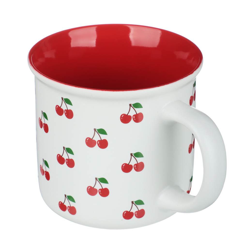 Кружка «Вишенки» тм MILLIMI, объем 380 мл наполнит чаепитие легкостью, подарит радостное настроение, а также добавит в сервировку домашнего уюта, гостеприимства и ощущения лета. Кружка имеет классическую форму с удобной ручкой. Подходит для вечерних душевных посиделок за чаем с аппетитным десертом дома или на даче. Фарфор легко моется, устойчив к сколам и царапинам при аккуратном использовании, не темнеет с течением времени.