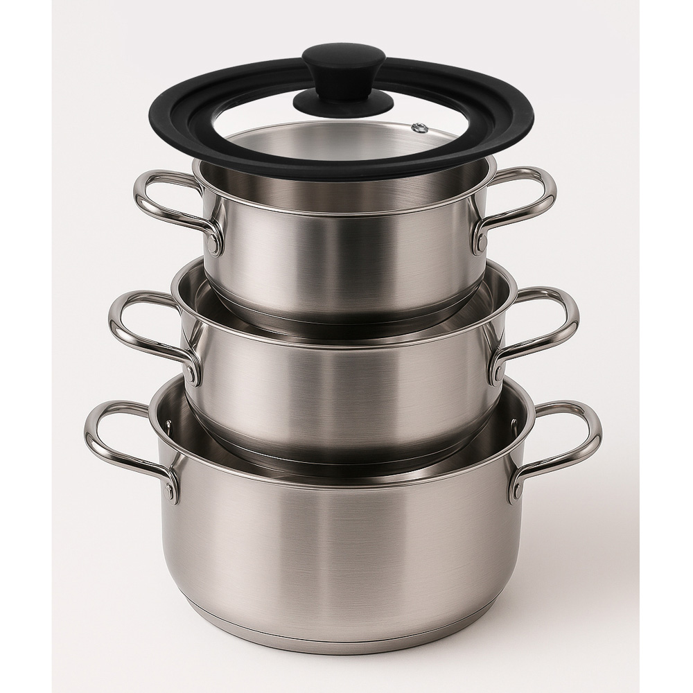 Крышка универсальная из стекла с ненагревающейся ручкой от SATOSHI – это умное решение для кухни. Всего одна крышка заменит целый набор крышек трех размеров: 16-18-20 см. Изготовлена из прозрачного стекла с отверстием для выпуска пара, что позволяет контролировать процесс приготовления, не открывая крышку. Края из пищевого силикона адаптируются под размер кастрюли или сковороды, а также обеспечивают герметичный прижим, препятствуя теплопотерям. Подойдет для кастрюль, сковородок, салатников и других емкостей.
