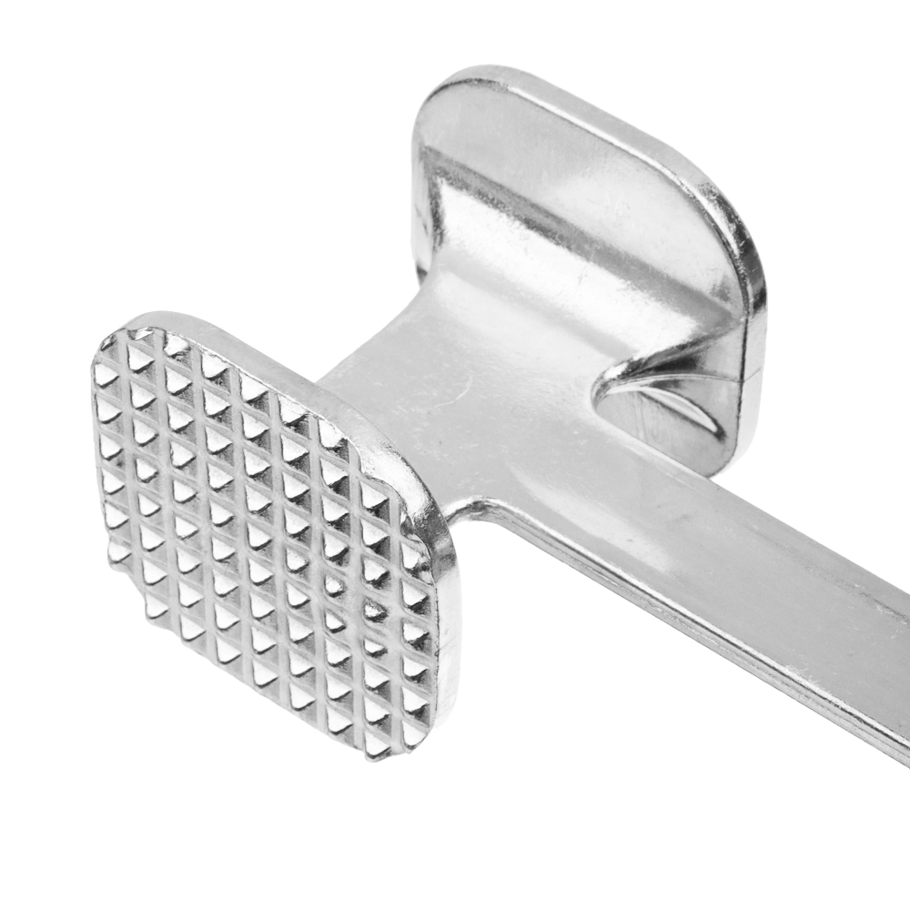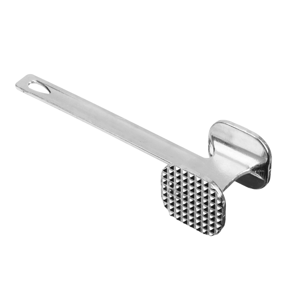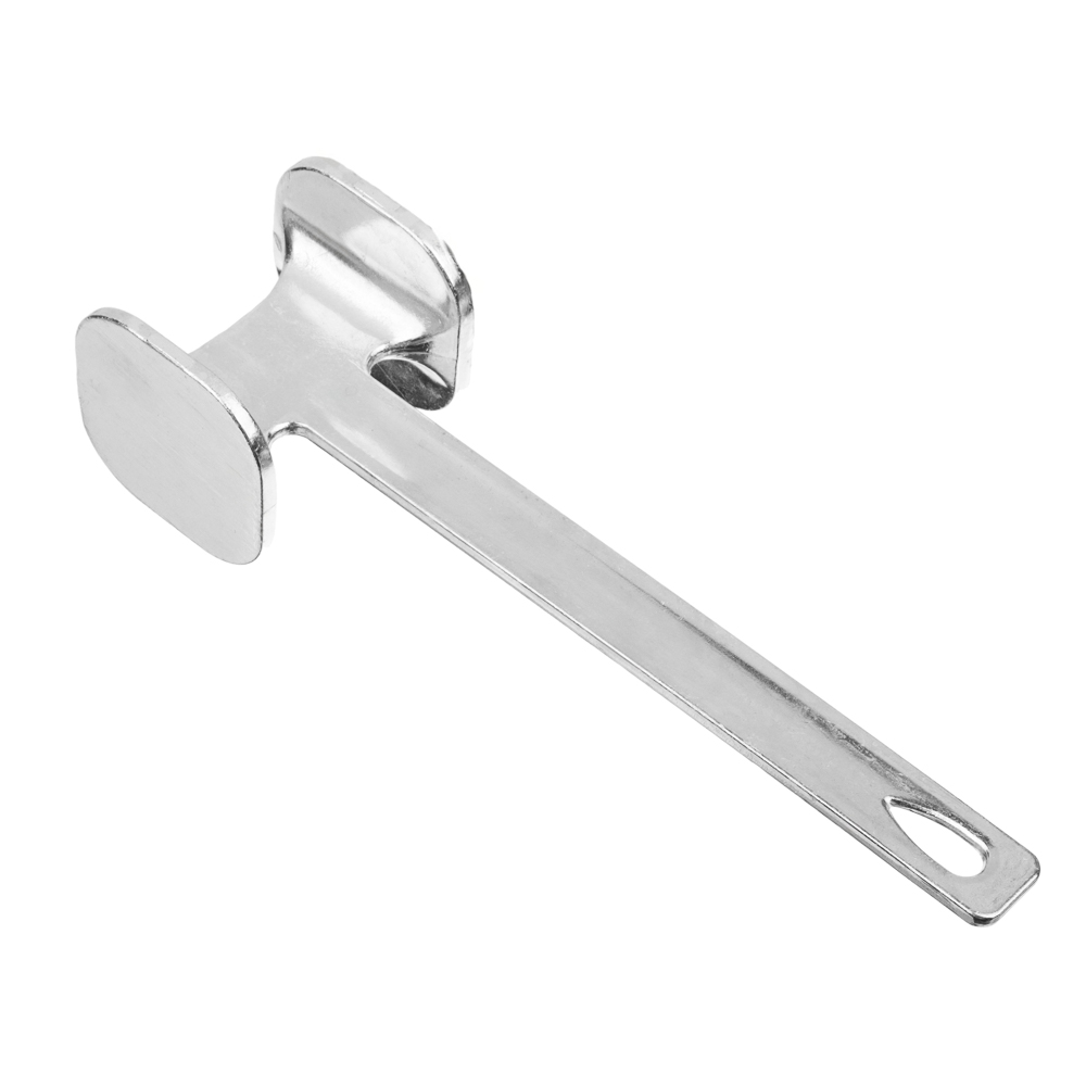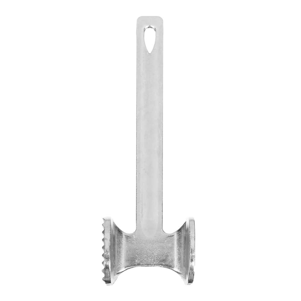 Молоток имеет удобную ручку с правильным распределением центра тяжести и отверстием для подвешивания. Одна ребристая сторона молотка предназначена для отбивания, чтобы сделать мясо мягким и нежным, а другая сторона плоская - для уплощения фактуры. Кухонный молоток - удобный кухонный аксессуар, верный помощник хозяйки на кухне, позволяет без особых усилий приготовить полуфабрикат для отбивных или бифштекса.