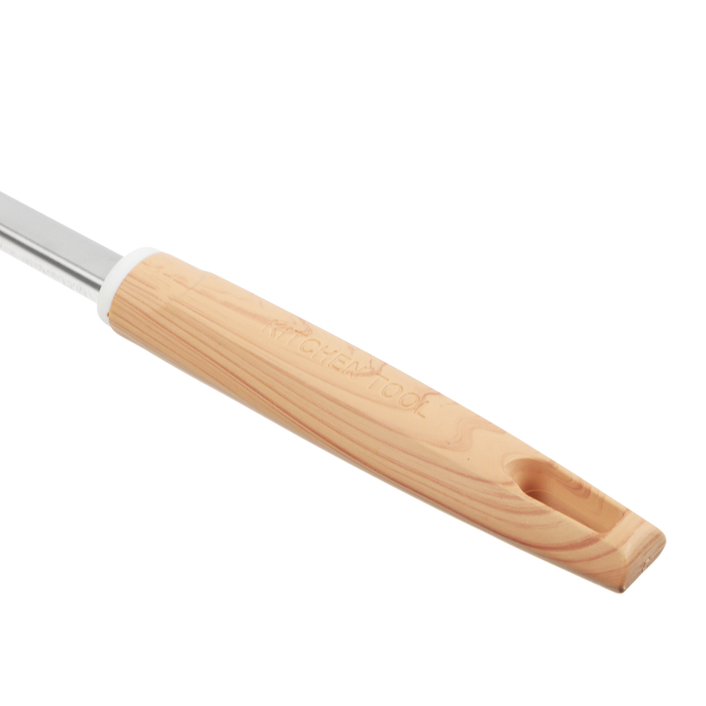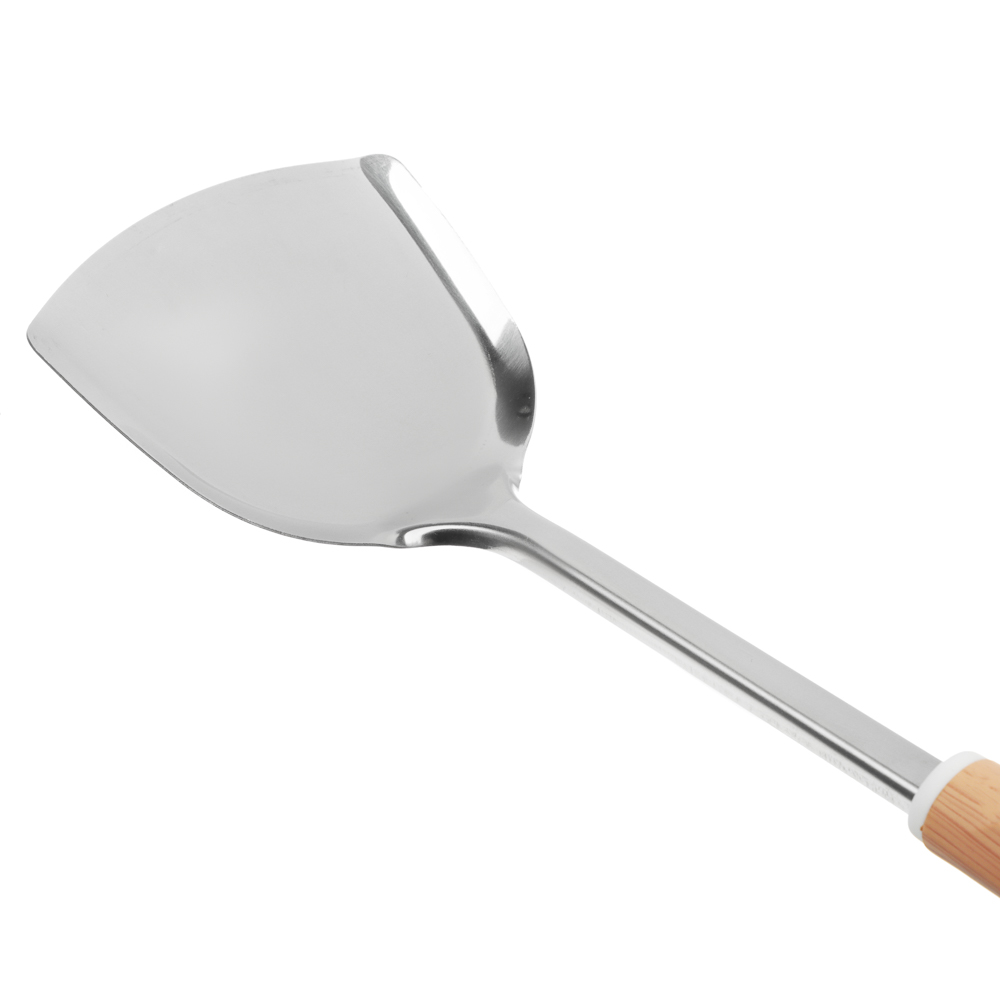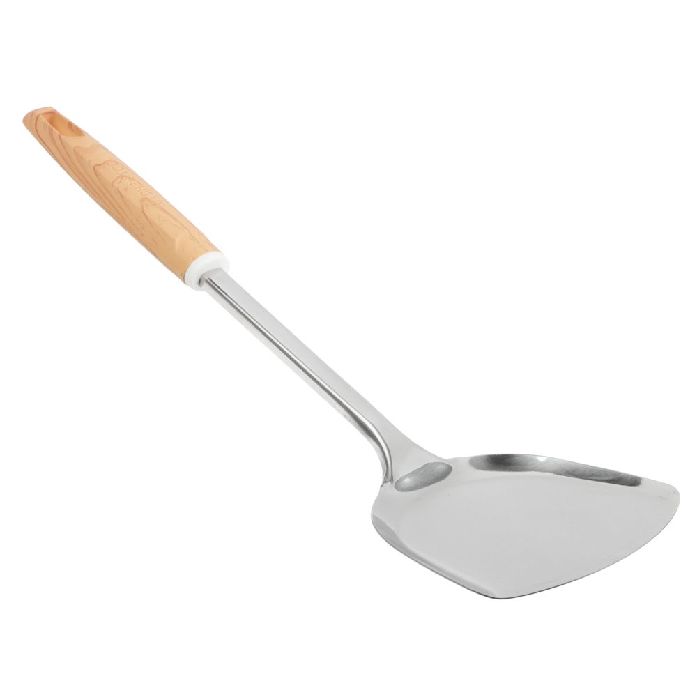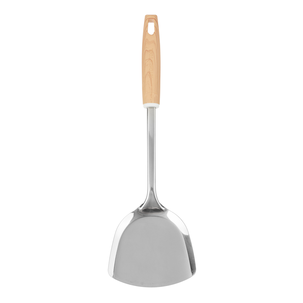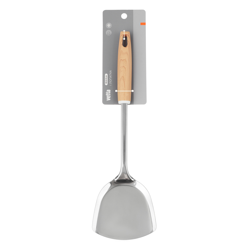 Лопатка VETTA «Стем», 33,5х9 см, из нержавеющей стали с полипропиленовой ручкой идеально подходит для переворачивания и извлечения продуктов из металлических сковородок и противней без антипригарного покрытия. Имеет тонкий профиль, что позволяет легко извлекать котлеты, рыбу и другие продукты, не повреждая их. Нержавеющая сталь не боится коррозии, выдерживает высокие температуры, не деформируется при взаимодействии с горячей посудой в том числе в процессе жарки на масле и во фритюре. Ручка из полипропилена не нагревается.