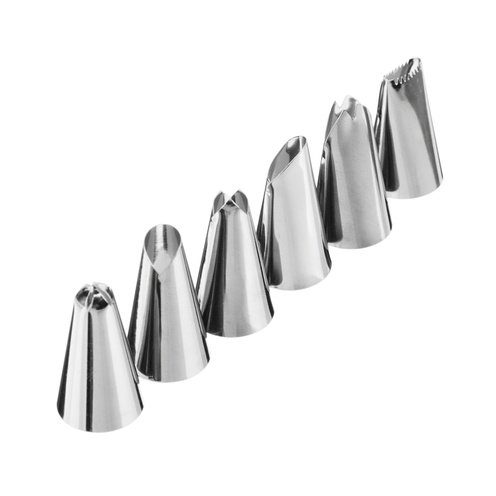 Насадки VETTA используются для фигурного нанесения крема из кондитерского мешка на торты и капкейки, а также любые другие десерты. Предназначены для создания декоративных элементов с мелким рифлением. С их помощью вы сможете украсить свое кондитерское изделие звездами, ракушками, рифленым бордюром и т.п. Также используется при работе с тестом. В наборе 6 насадок из нержавеющей стали.Рекомендации по применению: вставить насадку в кондитерский мешок, наполнить его кремом (сливками) и украсить кондитерское изделие. После использования тщательно промыть, высушить и протереть.
