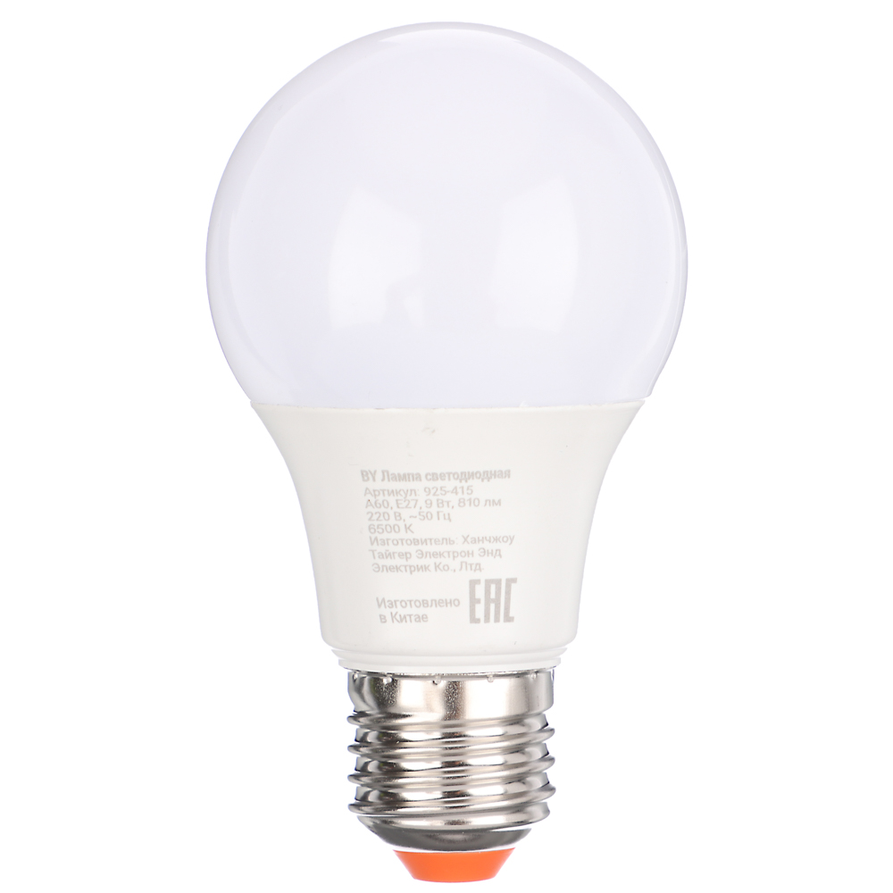 Светодиодная лампа BY A60 мощностью 9 Вт с цоколем E27 и световым потоком 810 Лм обеспечивает яркое и равномерное освещение. Цветовая температура 6500 K создаёт холодный белый свет, подходящий для рабочих зон и помещений с высокой освещённостью. Лампа работает в диапазоне напряжений 175–265 В, что делает её устойчивой к перепадам электричества. Индекс цветопередачи Ra>80 гарантирует естественные цвета освещаемых предметов, а коэффициент пульсации IRF <5% предотвращает усталость глаз.