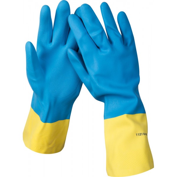Особенностью этих перчаток является износоустойчивость и суперпрочность. Латекс и неопрен обеспечивают надежную защиту от влаги, 20%-х растворов щелочей и кислот и механических повреждений. Рифленое покрытие на ладони уменьшает скольжение и позволяет осуществлять хороший захват. Благодаря антибактериальному и гипоаллергенному хлопковому внутреннему покрытию перчатки работать в них комфортно и удобно. Оптимальная длина манжеты обеспечивает максимальную защиту запястья и удобство одевания-снимания. Идеально для садовых и бытовых работ.Вес - 83 гр.\пара р-ра "М"