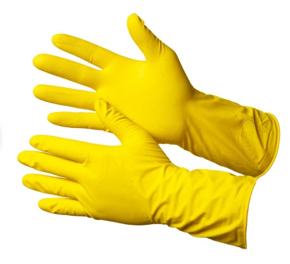 Хозяйственные перчатки из натурального латекса с внутренним флокированием (напыление хлопка) для комфортной эксплуатации и поглощения пота.