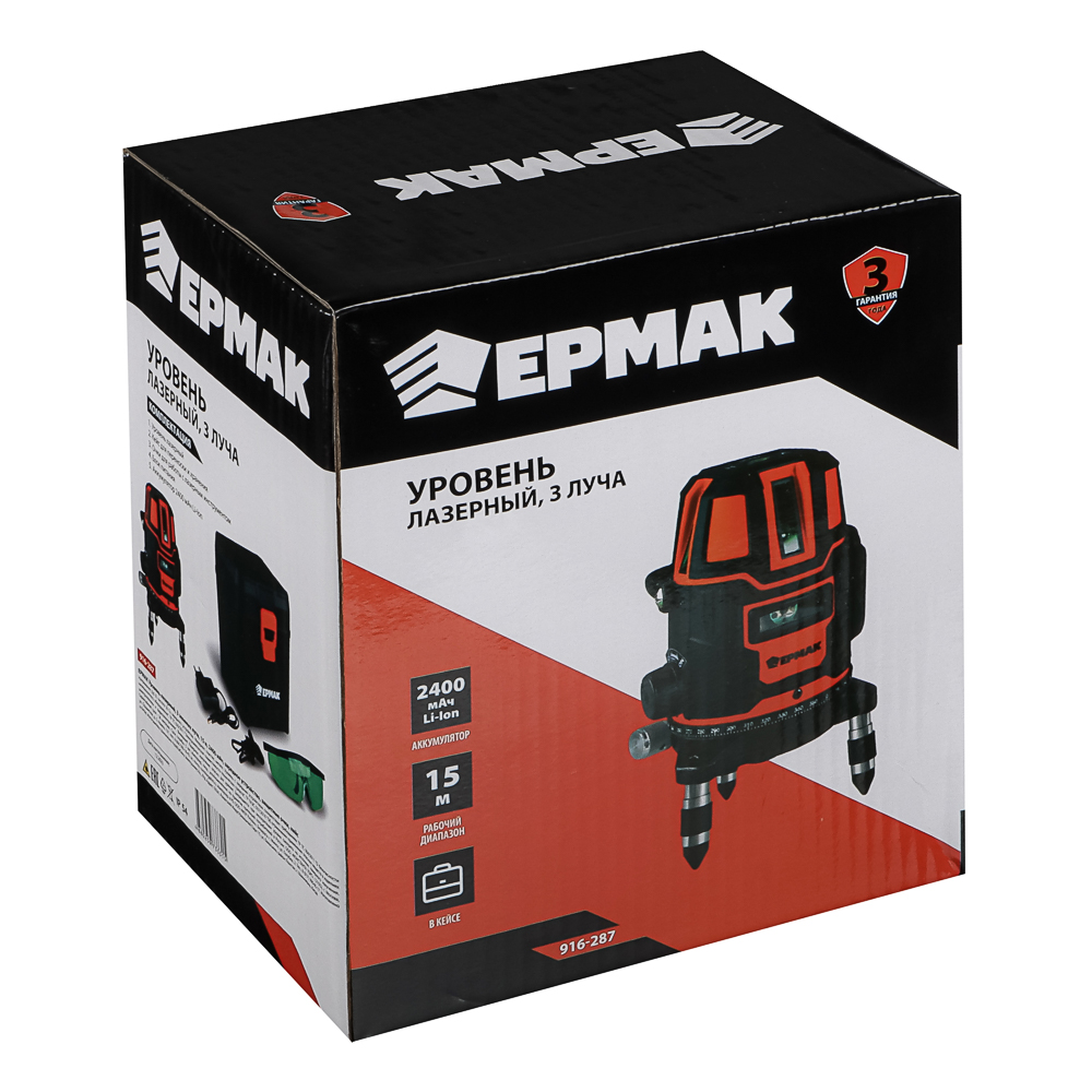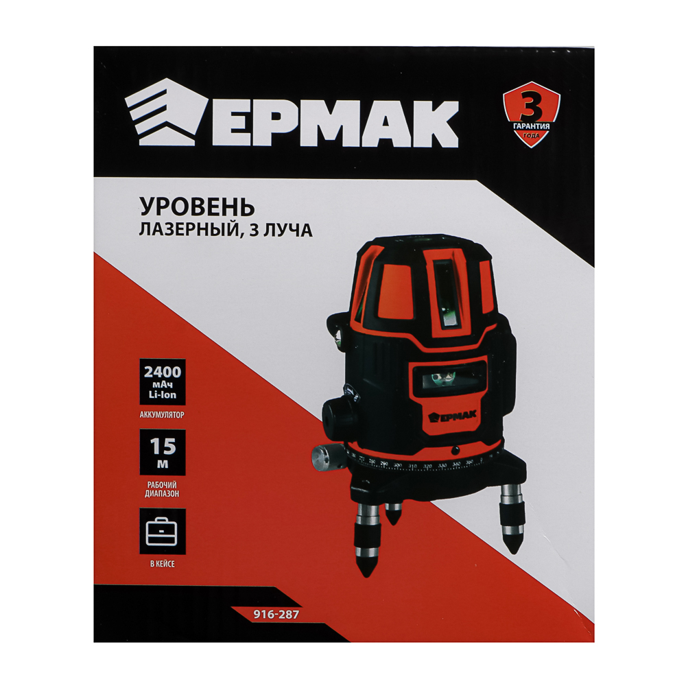 Профессиональный лазерный уровень ЕРМАК – незаменимый помощник для точных строительных и ремонтных работ. Оснащенный тремя яркими зелеными лучами, инструмент обеспечивает идеальную разметку на расстоянии до 15 метров. Благодаря мощному аккумулятору емкостью 2400 мАч устройство гарантирует длительную автономную работу, а встроенная система самовыравнивания позволяет быстро приступить к измерениям. Прочный кейс надежно защищает устройство при хранении и переноске, а продуманная конструкция с острыми ножками позволяет устойчиво размещать уровень даже на неровной поверхности. Зеленый цвет лучей обеспечивает отличную видимость на любых поверхностях, делая разметку быстрой и точной.