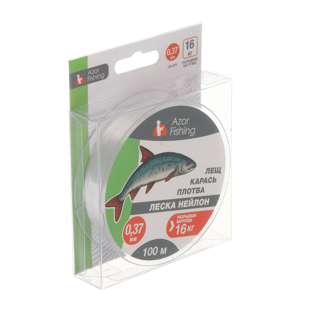 Нейлоновая леска Azor Fishing "Карась, Плотва" диаметром 0,37 мм выдерживает рыбу весом до 16 кг. Хороший вариант для речек богатых корягами и водорослями. Обладает отменными амортизирующими свойствами. При сильном рывке вместо того, чтобы оборваться, она растягивается. Как результат — рыбак не потеряет снасти и улов. Леска из нейлона не скручивается, не помнит прошлых намоток. Имеет средний уровень прочности. При забросе не путается. Светло-голубая нить не заметная в воде, хороша в тандеме со спиннингом и поплавочной удочкой.