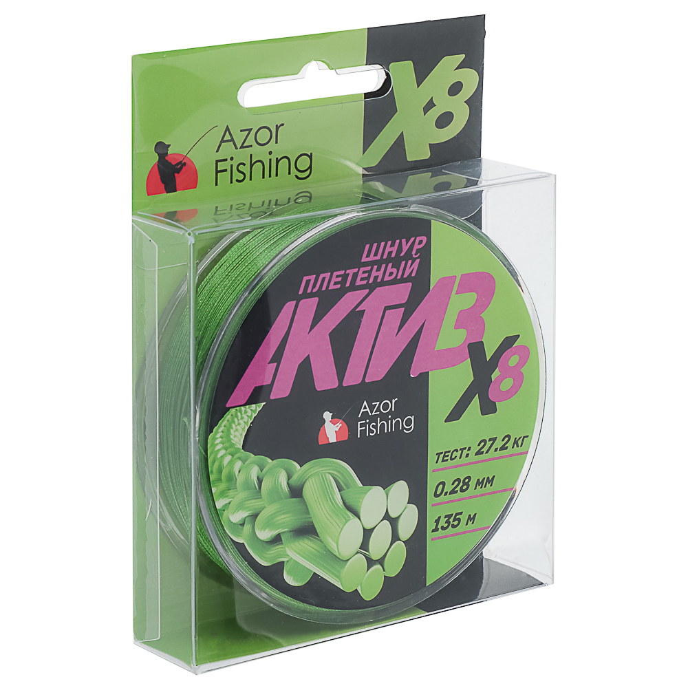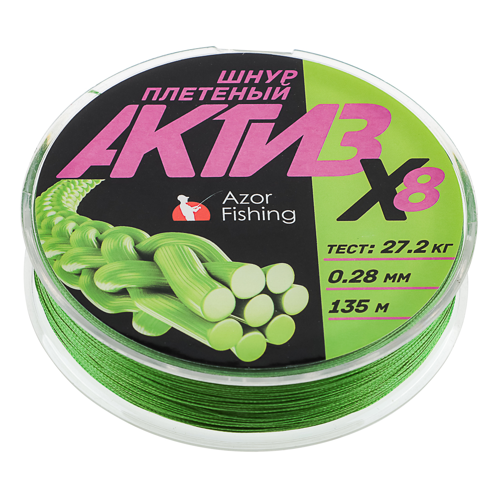 Плетеный шнур AZOR FISHING АКТИВ X8 толщиной 0,28 мм с разрывной нагрузкой 27,2 кг и длиной 135 м — это легкий и прочный шнур из высокомолекулярного полиэтилена. Восьмижильное плетение обеспечивает гладкость, износостойкость и высокую чувствительность, что делает его идеальным для спиннинга, фидера и троллинга. Шнур не впитывает воду, устойчив к истиранию и ультрафиолету, что гарантирует долговечность даже в сложных условиях ловли. Подходит для ловли на дальних дистанциях и работы с легкими приманками.