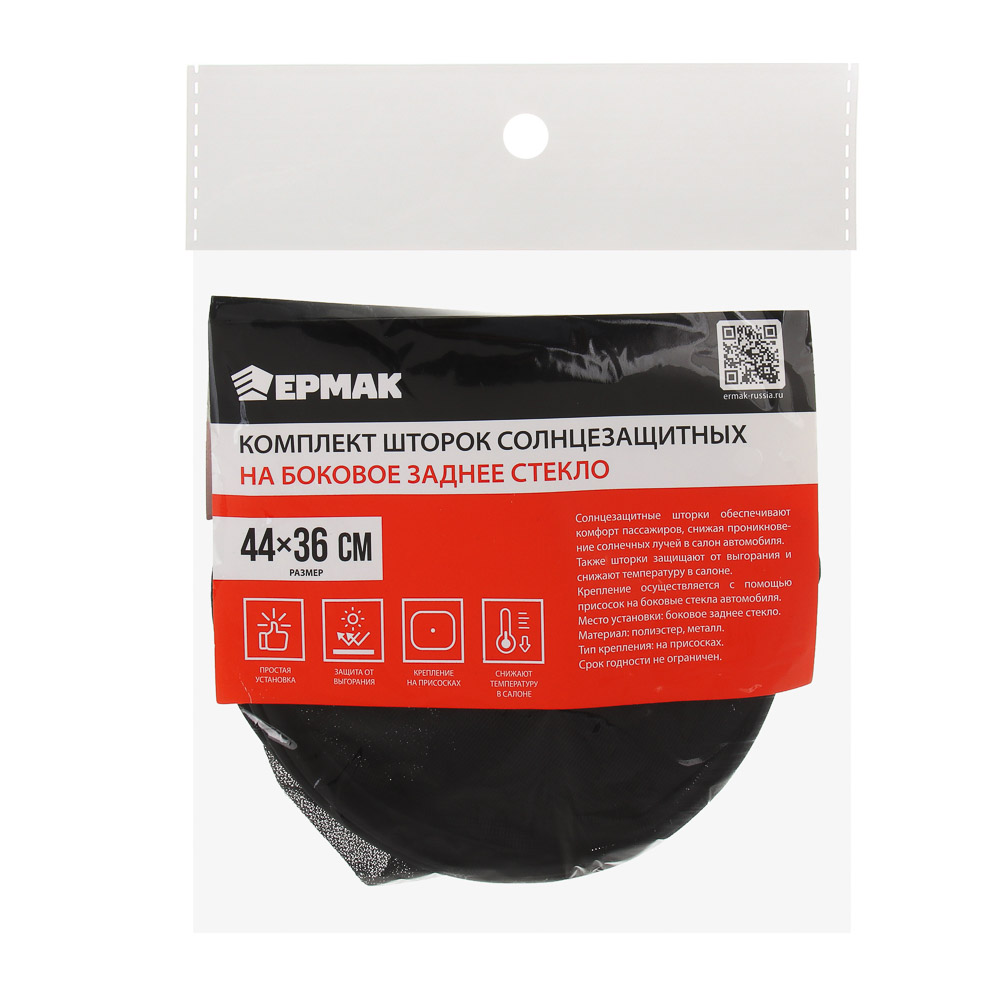 Солнцезащитные шторки размером 44х36 см увеличивают комфорт пассажиров, снижая проникновение солнечных лучей в салон автомобиля. Также шторки защищают поверхность интерьера от выгорания и снижают температуру в салоне. Крепление осуществляется с помощью присосок.