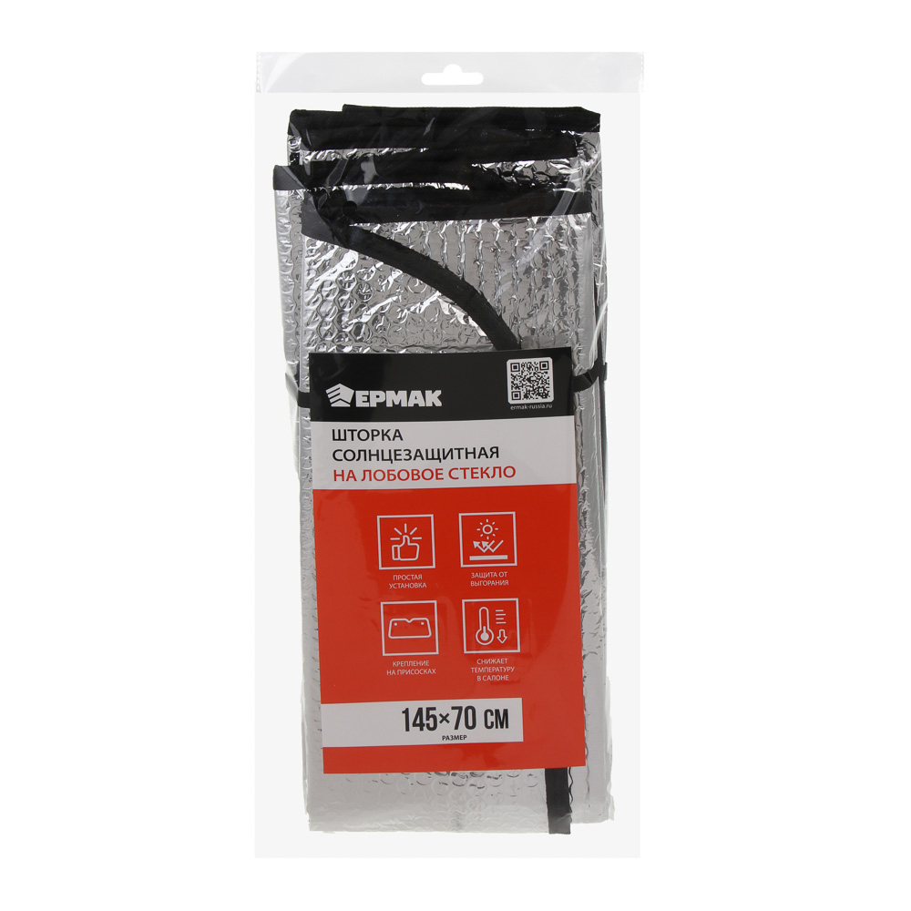 Двусторонняя солнцезащитная шторка размером 145x70 см защитит от попадания солнечных лучей со стороны лобового стекла в салон машины. Серебристая поверхность шторки отражает солнечные лучи, предотвращает их попадание в салон и защищает торпеду автомобиля от нагрева.