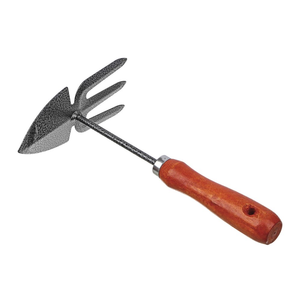 INBLOOM Мотыга садовая — настоящий помощник для истинных дачников. Вилка предназначена для аэрации почвы. Эта процедура необходима для нормального развития и роста растений. Мотыжка отлично подойдёт для прополки. С данным приспособлением грядки и клумбы будут чистыми от сорняков. Изделие выполнено из качественного металла, а рукоятка — из дерева. Инвентарь имеет небольшие размеры, благодаря чему его удобно хранить.Характеристики:• Размер: 25х14 см.• Материал: металл, дерево.