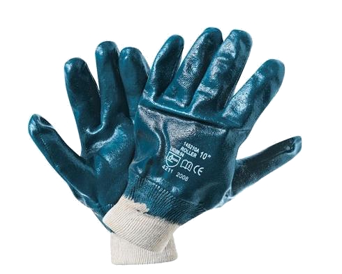 Прочные перчатки с двойным нитриловым покрытием, с подкладкой из ткани джерси. Полное покрытие, трикотажный манжет.