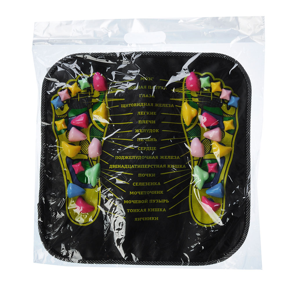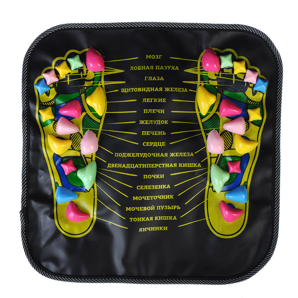 Коврик массажный для ног с указанием акупунктурных точек. Предназначен для точечного массажа рефлекторных зон, оздоровительного массажа стоп, укрепления связочно-мышечного аппарата голеностопного сустава.