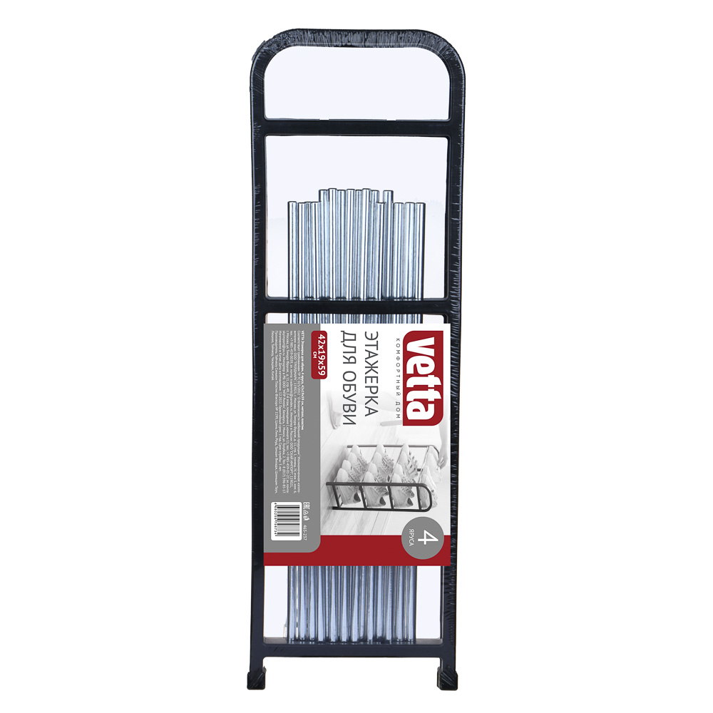 Этажерка для обуви VETTA имеет пластиковый каркас и металлические прутья c антикоррозийным полимерным покрытием, они обеспечивают прочность и устойчивость. Приспособление является не только отличным местом расположения повседневных вещей, но и мебелью, где можно хранить обувь в межсезонье, когда определённые модели вам временно не нужны.